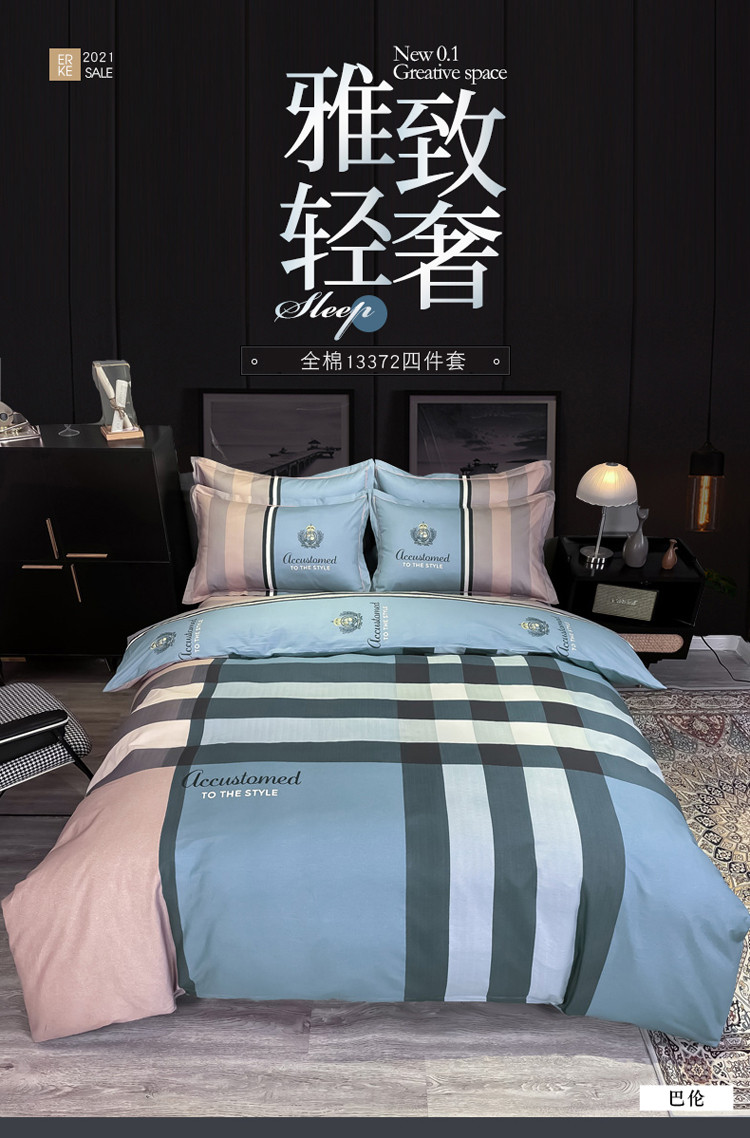 当前位置: 91家纺网 > 商品网购 > 床品套件 > 四件套 > 全棉普通四件套 > 金爱家 2021新款全棉13372四件套条格简约系列 巴伦