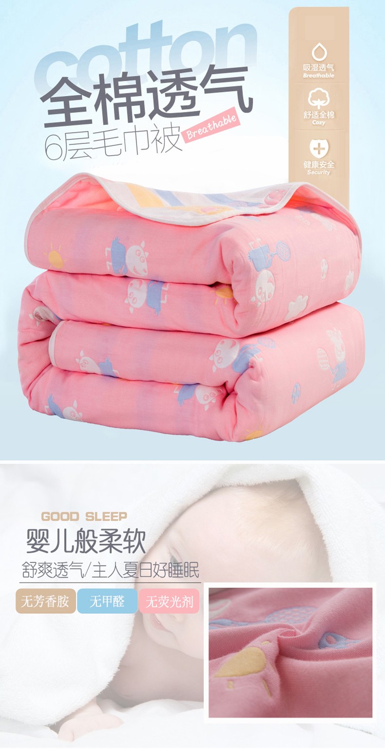 商品名称:朴尔 2021新款经典六层纱布全棉毛巾被系列 小猪琪琪-粉