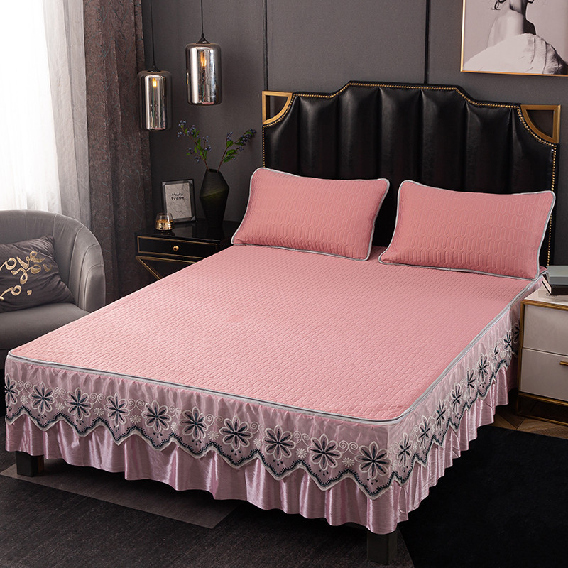 商品名称:纽缦家纺 2021新款凉感丝乳胶凉席可拆卸床裙款三件套 豆沙