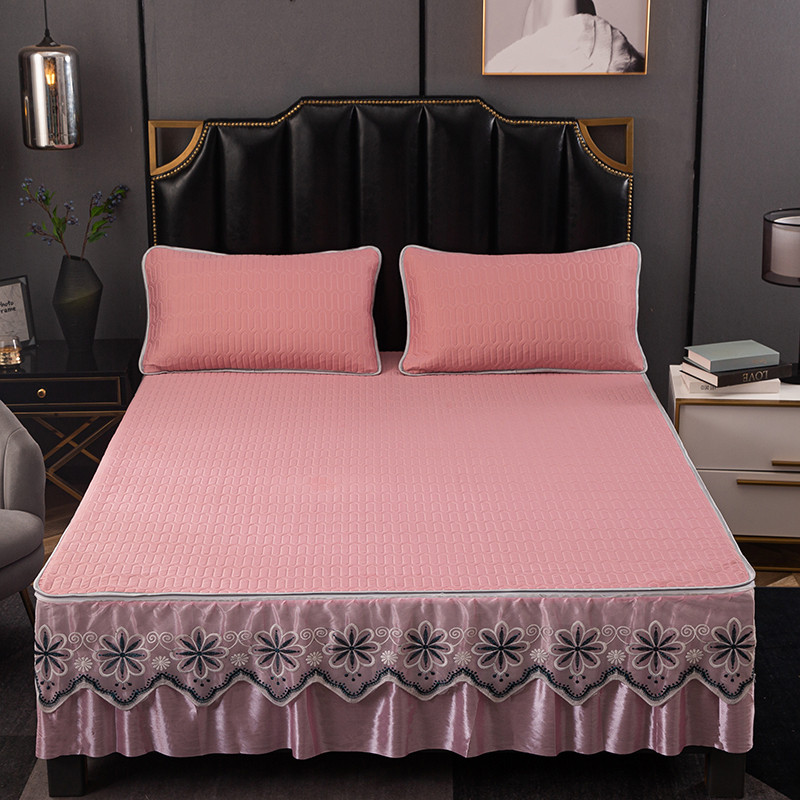 纽缦家纺 2021新款凉感丝乳胶凉席可拆卸床裙款三件套 豆沙