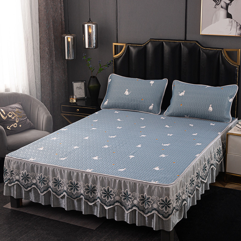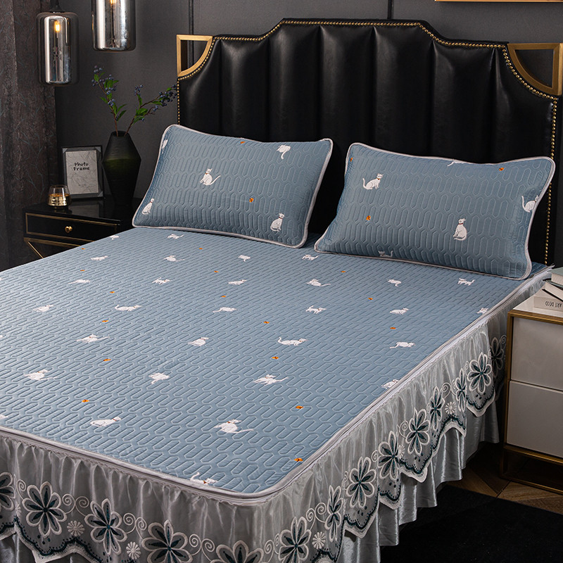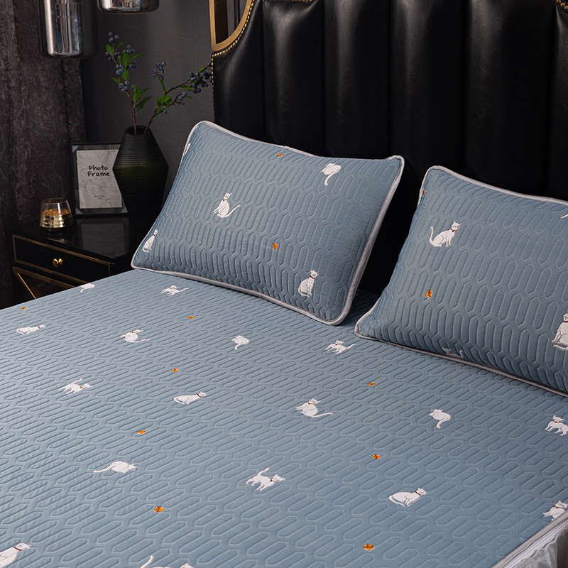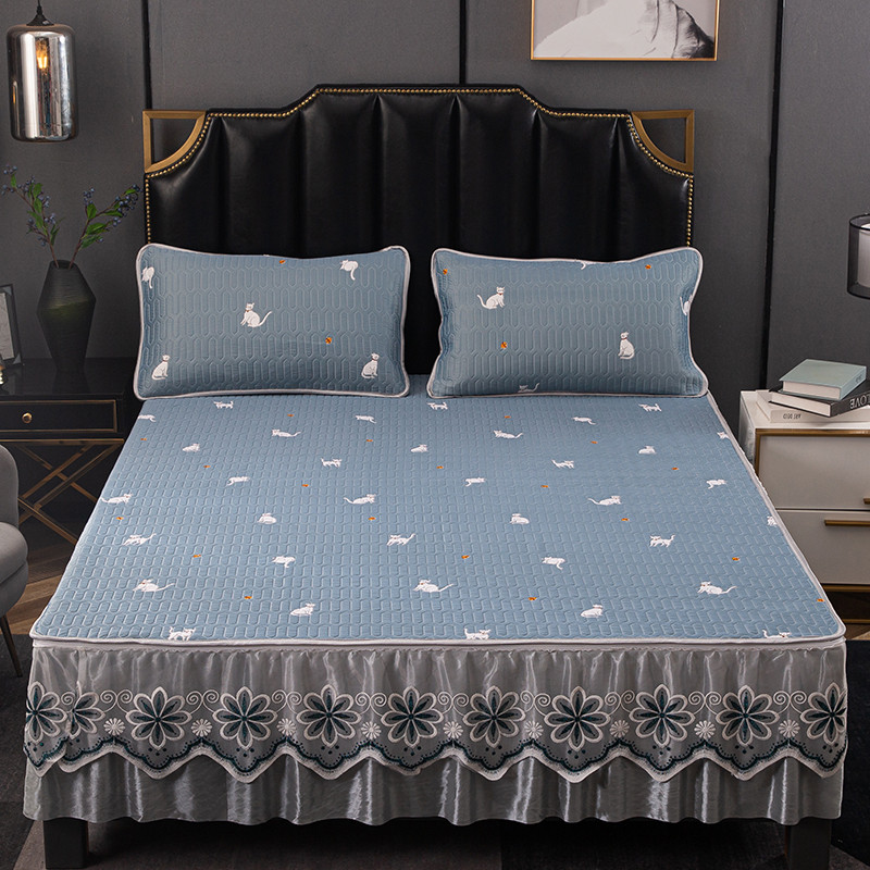 商品名称:纽缦家纺 2021新款凉感丝乳胶凉席可拆卸床裙款三件套 喵趣横生