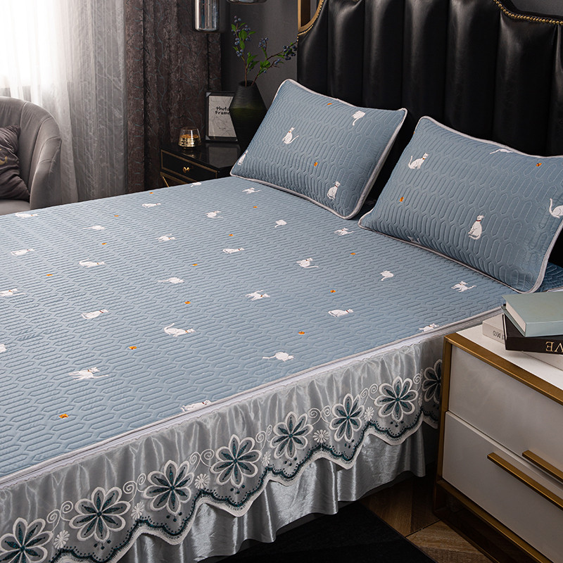 纽缦家纺 2021新款凉感丝乳胶凉席可拆卸床裙款三件套 喵趣横生