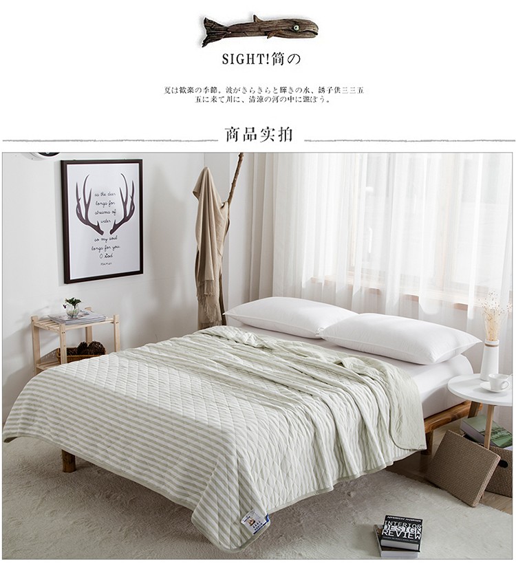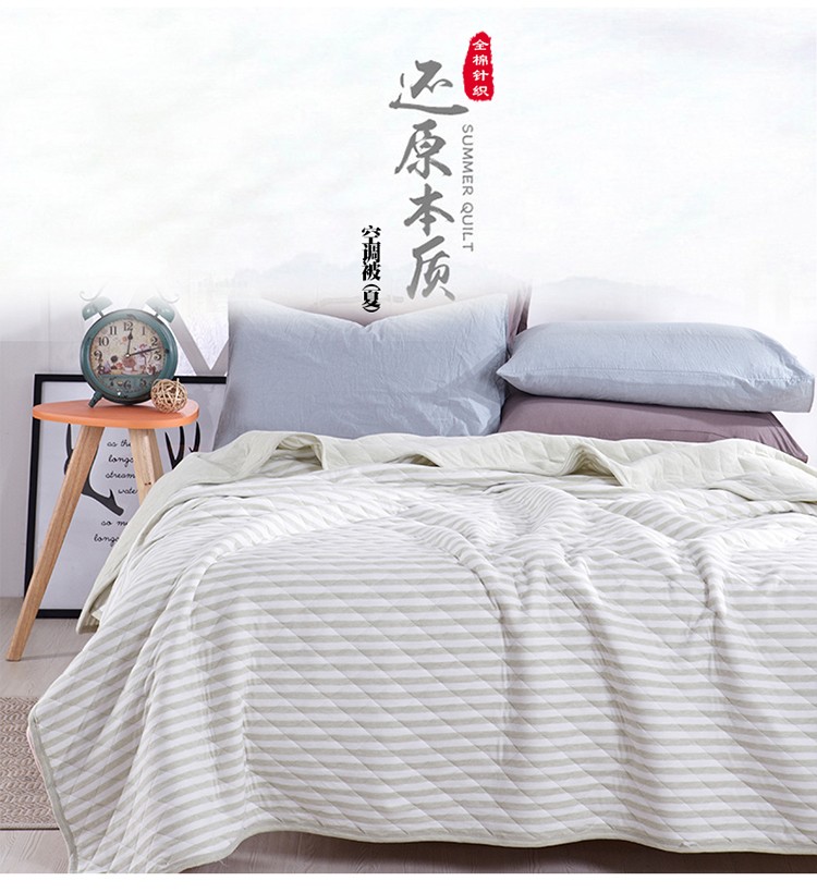 商品名称:琪琪阁 2022新款针织棉夏被宽条纹系列 浅绿条纹