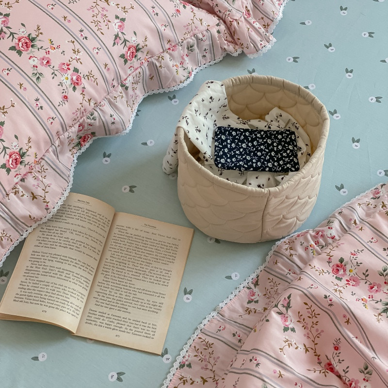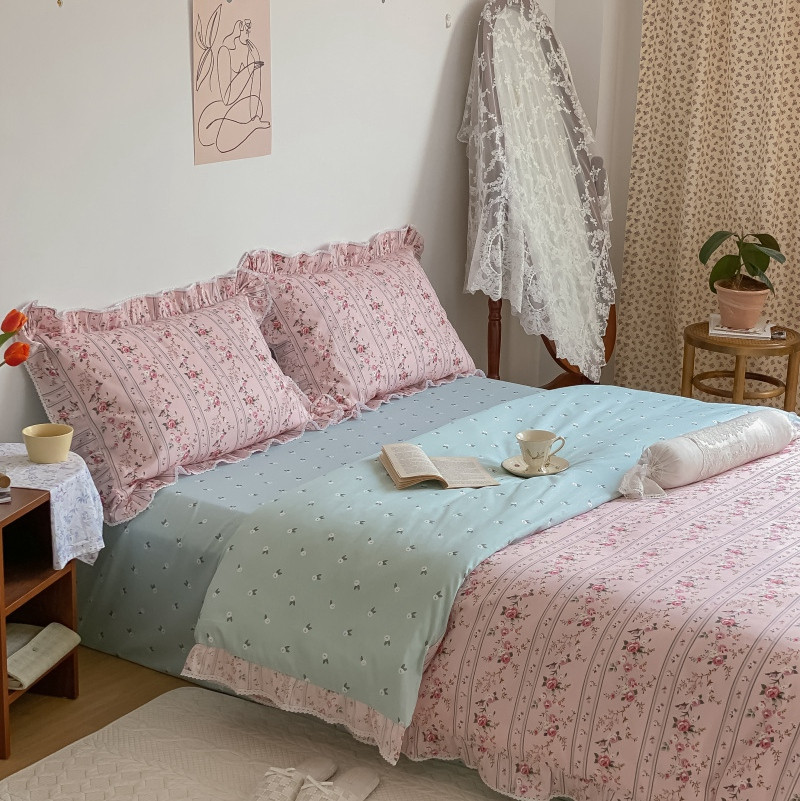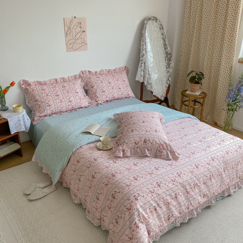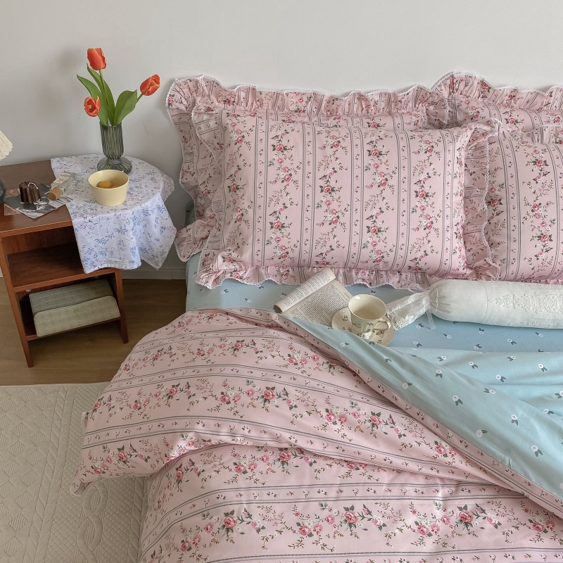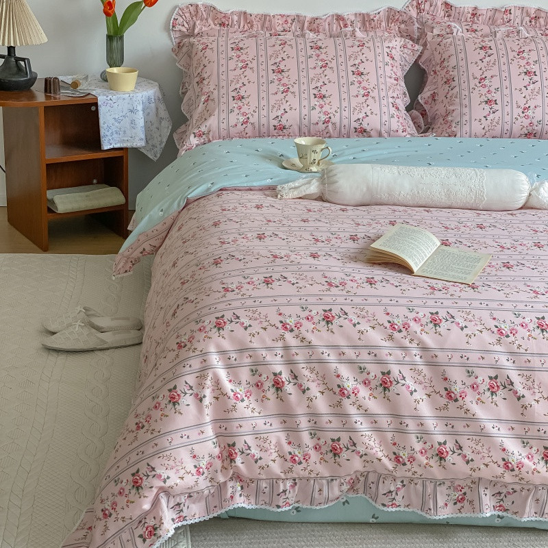 棉生活 2022新款韩系花边碎花四件套 橡皮粉花