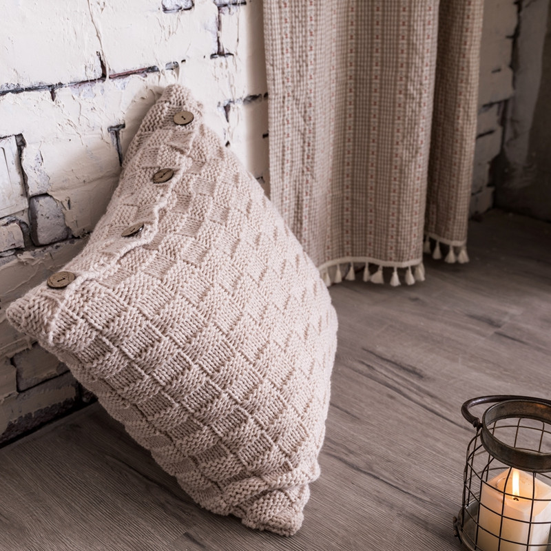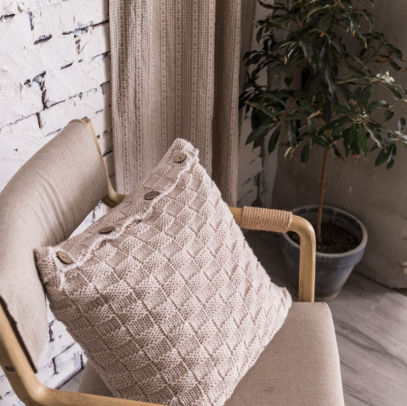 商品名称:918拾朵家居 2021新款立体方格抱枕 米色