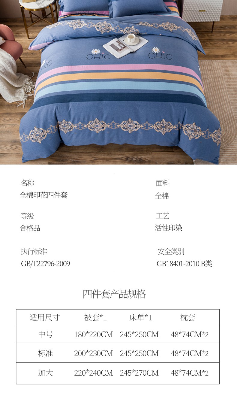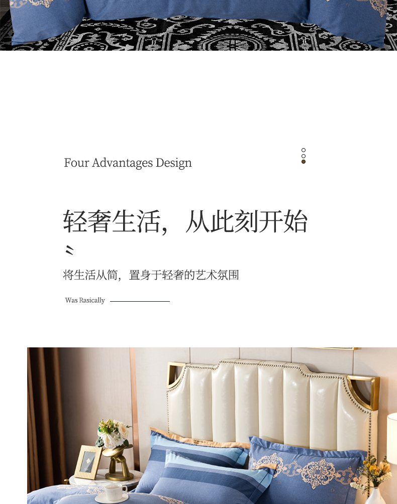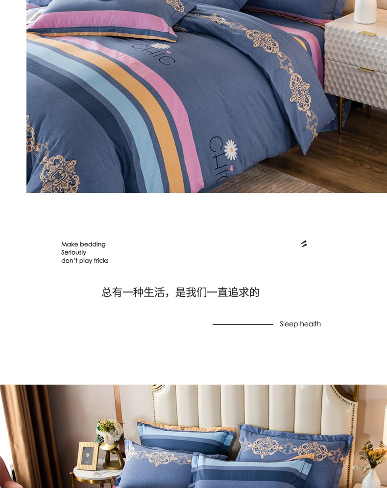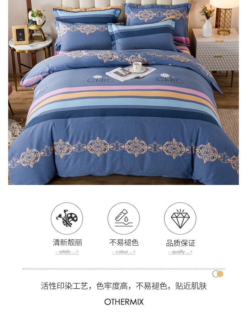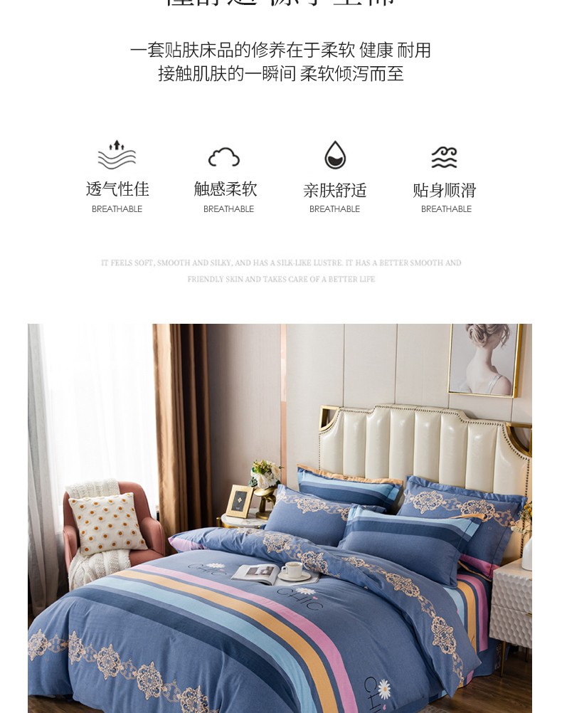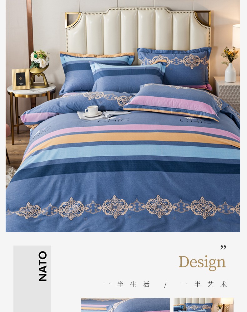 商品名称:金纱玉纺 2022新款磨毛四件套 雅致-蓝
