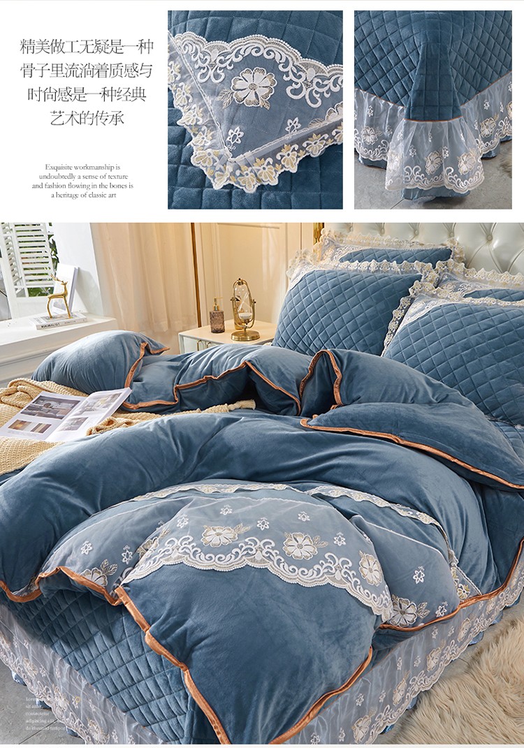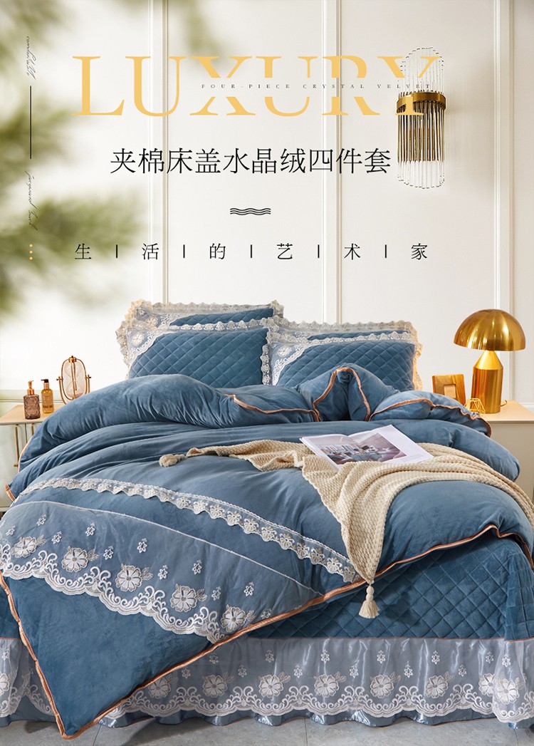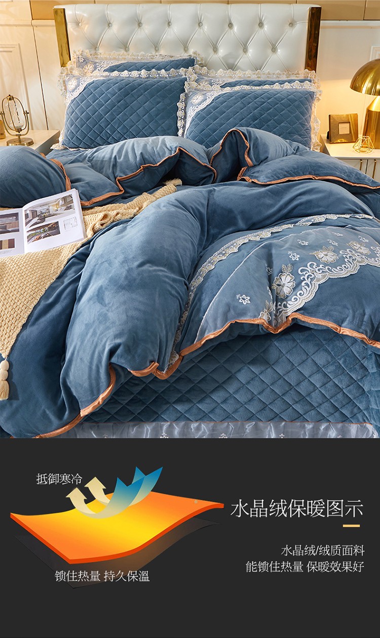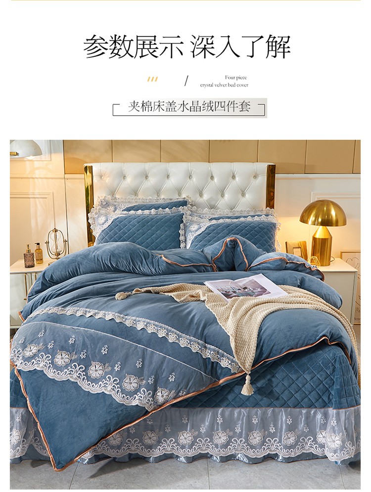 商品名称:网红馆 2025新款曼妮夹棉床盖水晶绒四件套 日暮兰