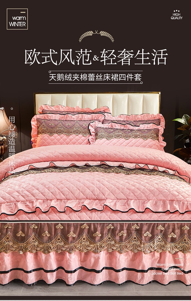 • 91家纺网 家纺一手货源 找家纺 网红馆 2025新款盛世佳人天鹅绒夹棉单品床裙被套枕套 蜜粉