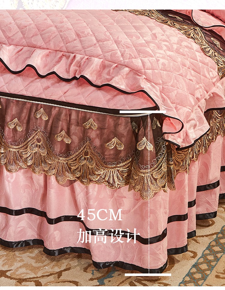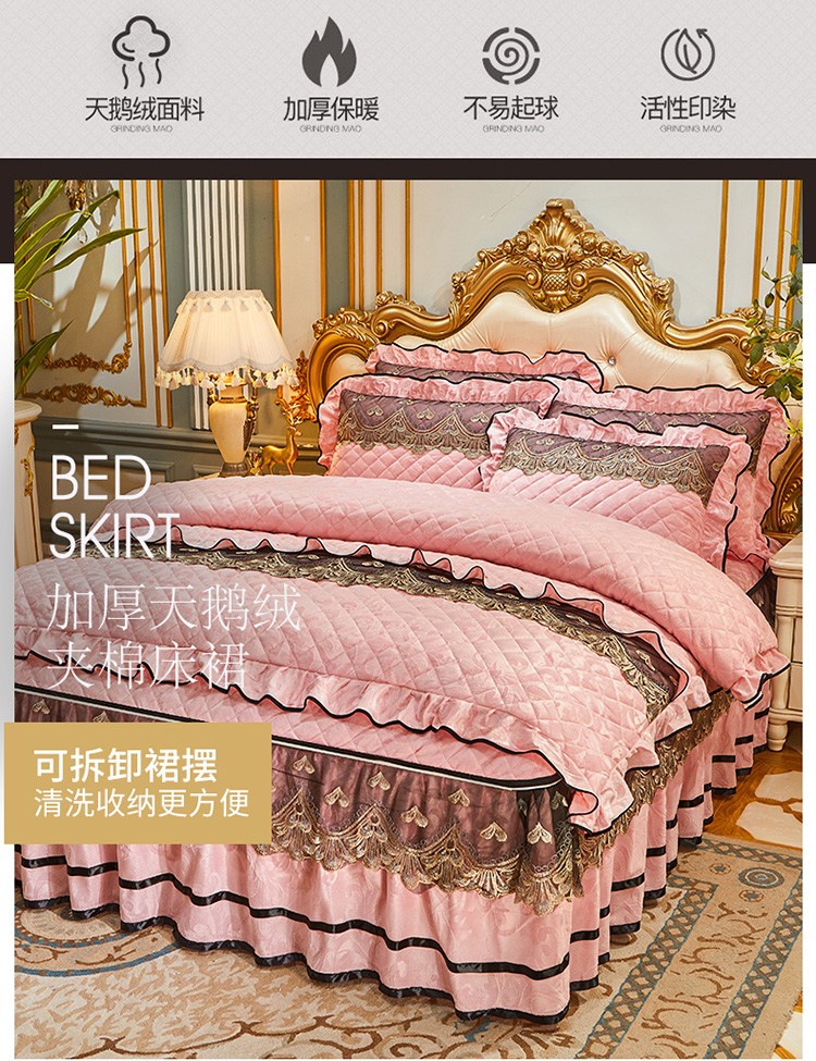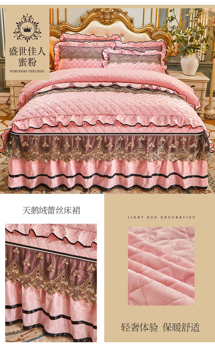 网红馆 2025新款盛世佳人天鹅绒夹棉单品床裙被套枕套 蜜粉