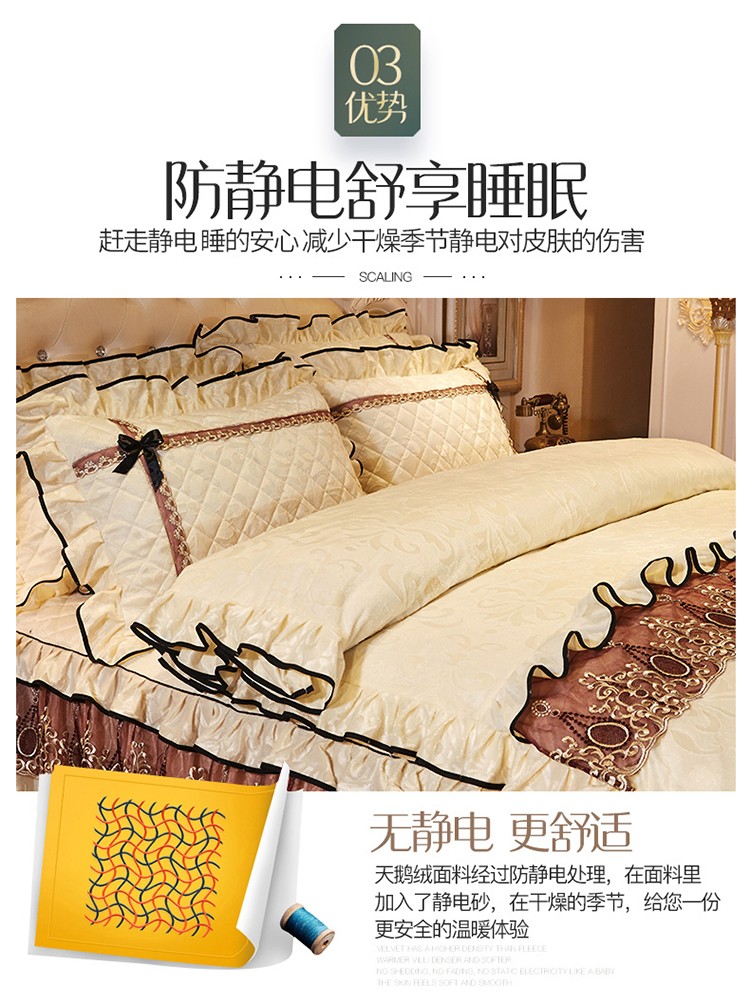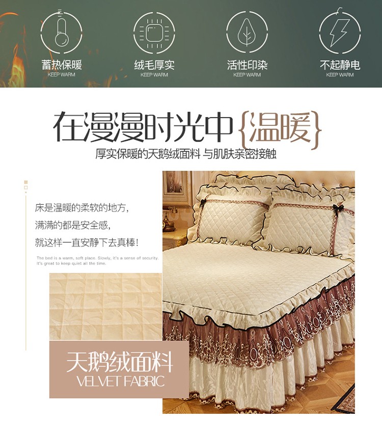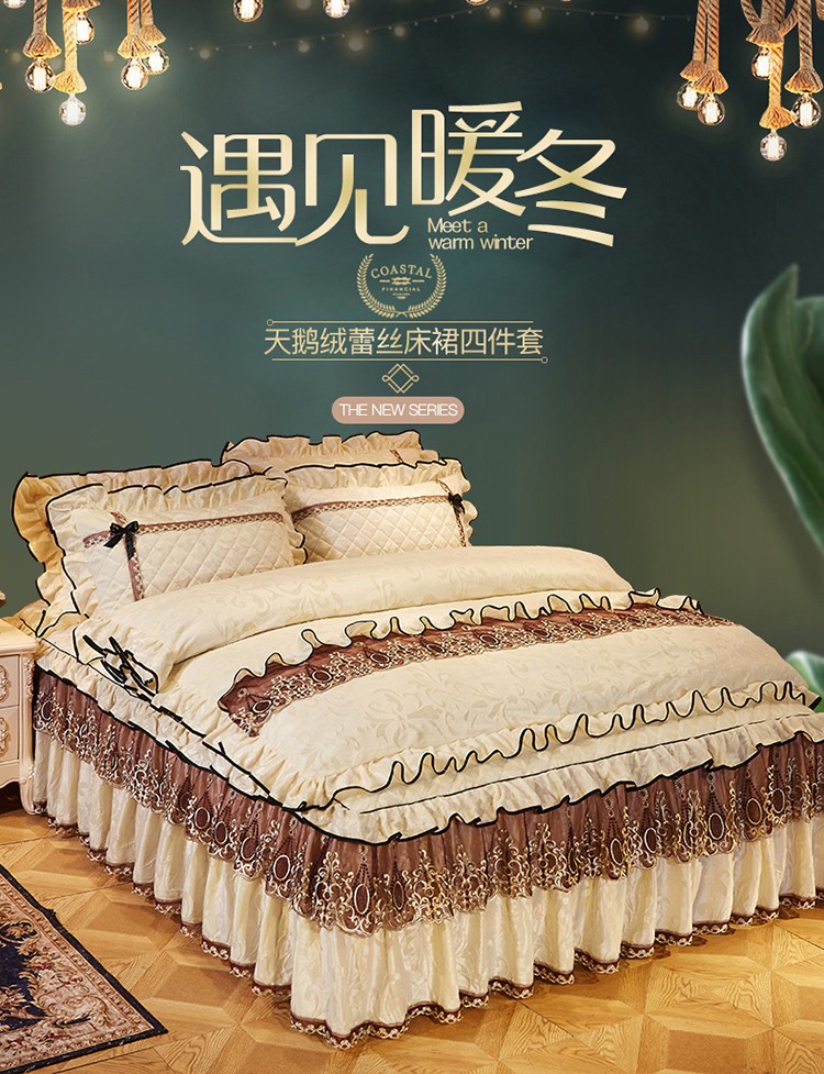 网红馆 2025新款梦醉奢华天鹅绒床裙四件套 米色