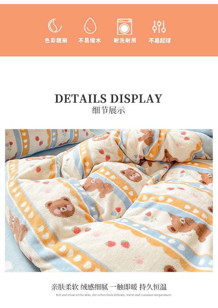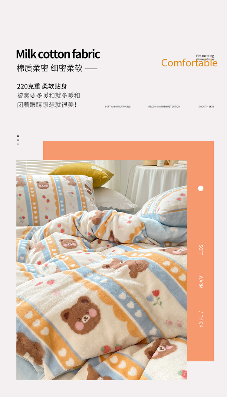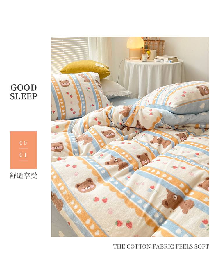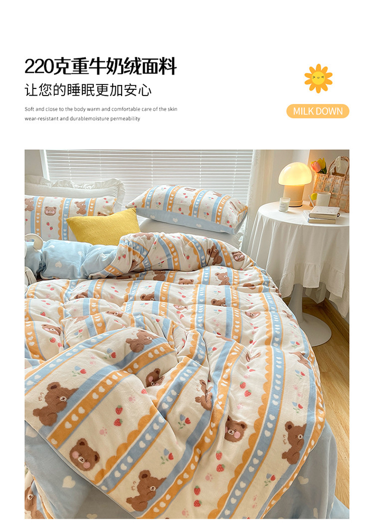 商品名称:安哆啦 2021新款220g牛奶绒简约款四件套 可爱熊