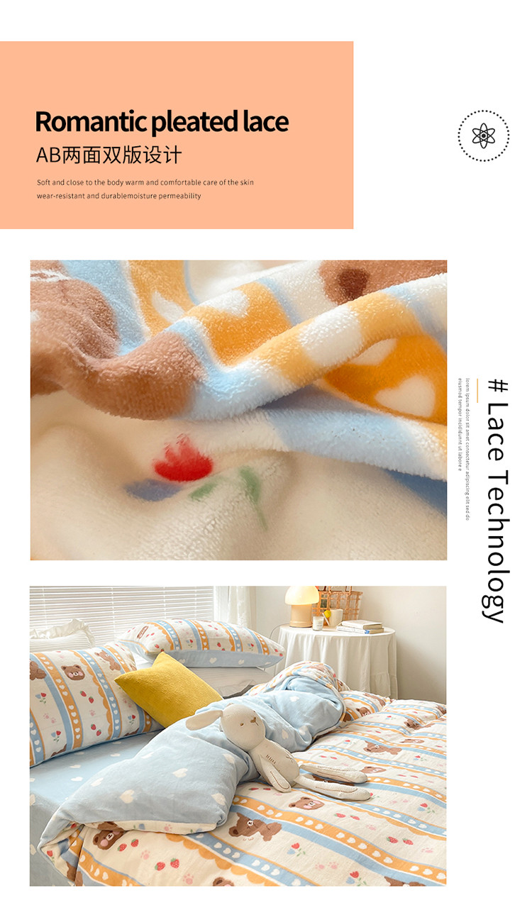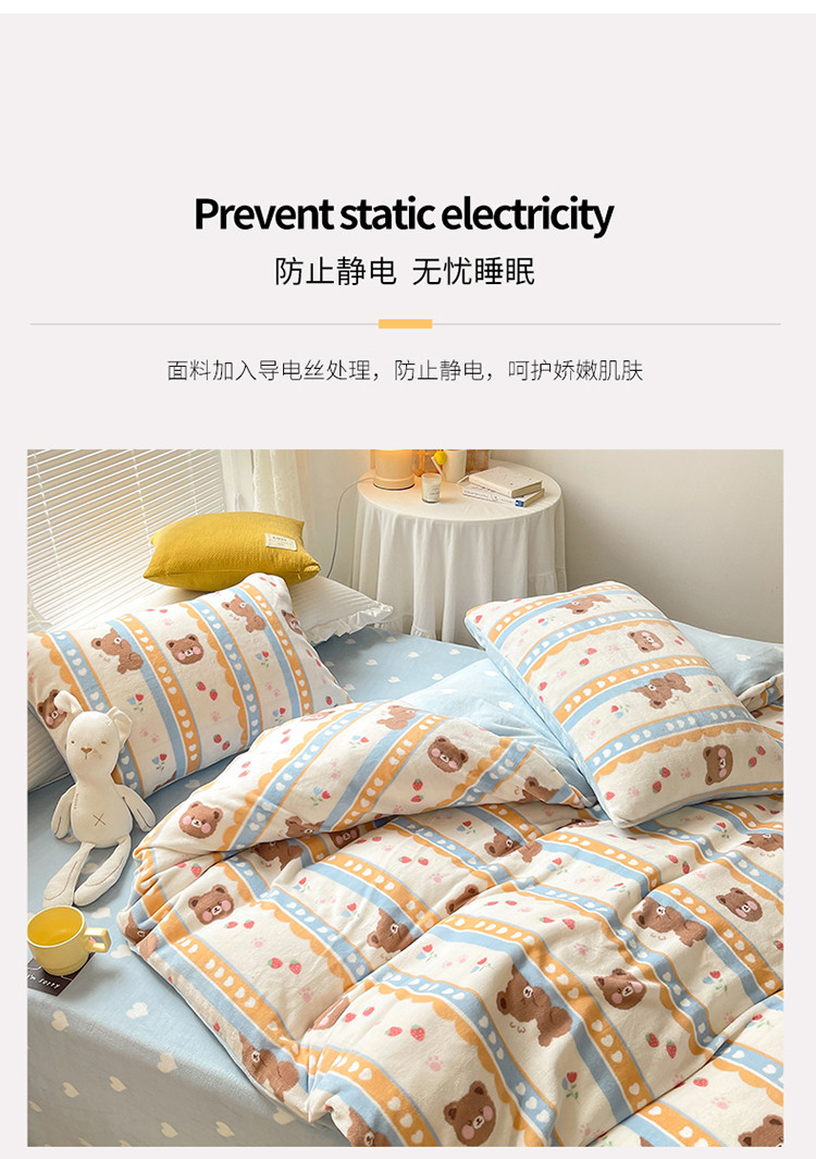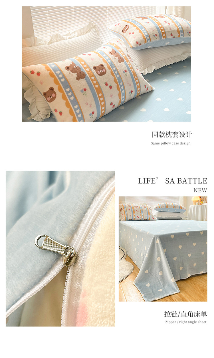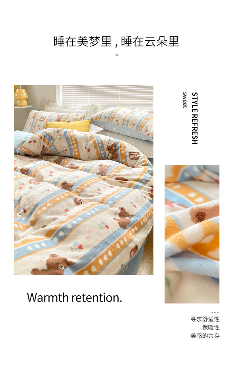 商品名称:安哆啦 2021新款220g牛奶绒简约款四件套 可爱熊