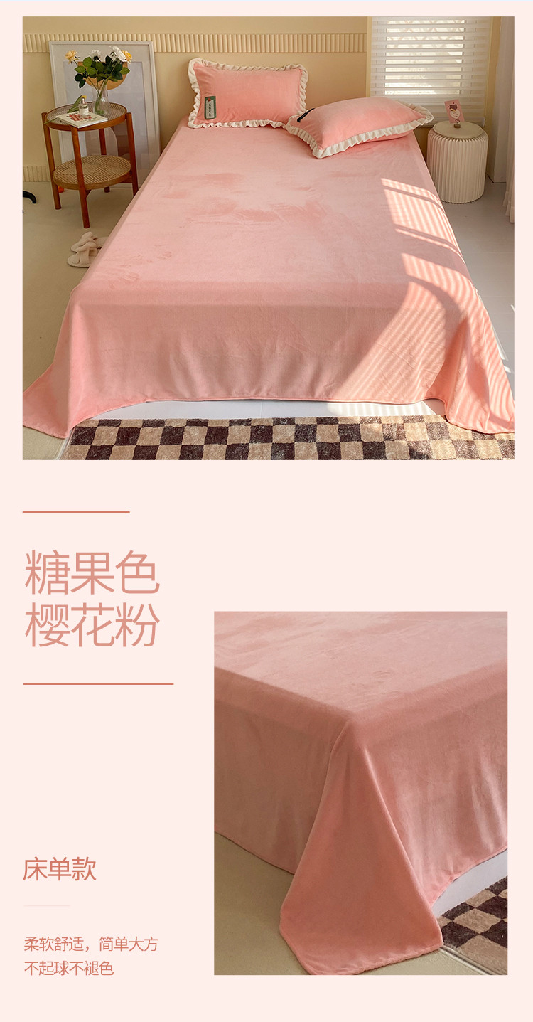 安哆啦 2021新款糖果色单品床单 糖果色-樱花粉