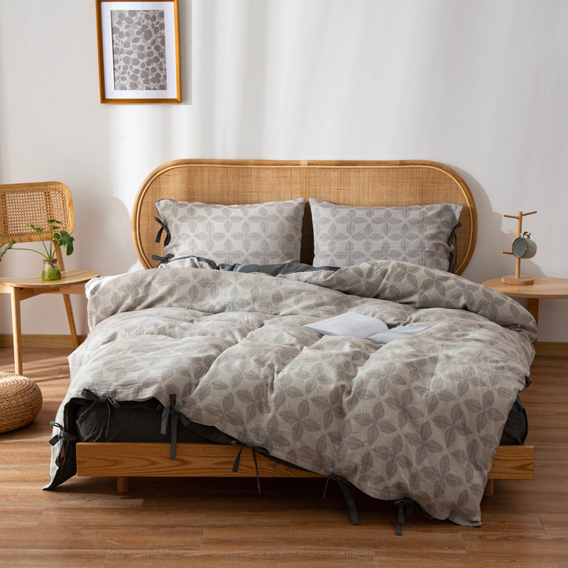 当前位置: 91家纺网 > 商品网购 > 床品套件 > 四件套 > 全棉普通四件套 > 安莱生活双层纱四叶草色织大提花蝴蝶结工艺款四件套 黑灰幸运草