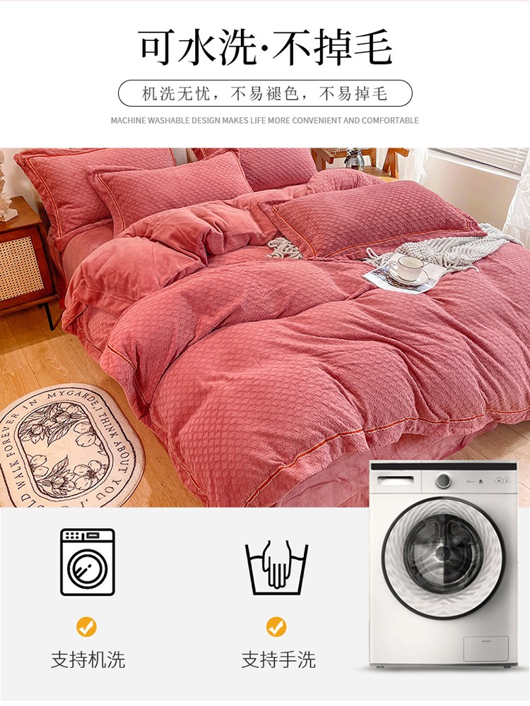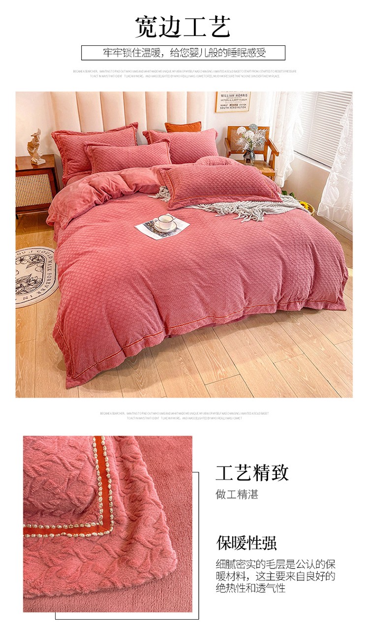 商品名称:金爱家2021新款荷叶边立体雕花绒暖绒四件套 豆沙