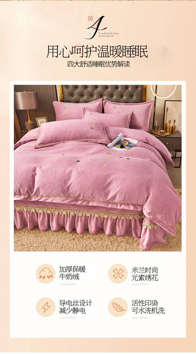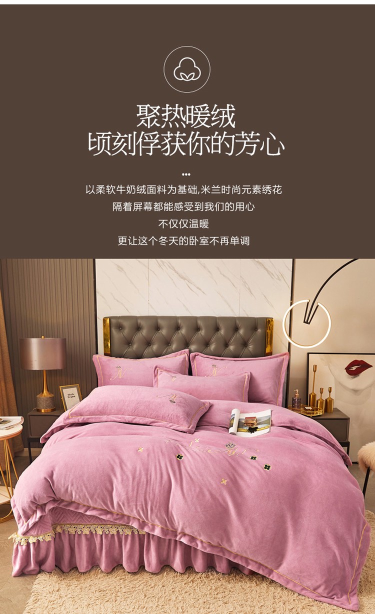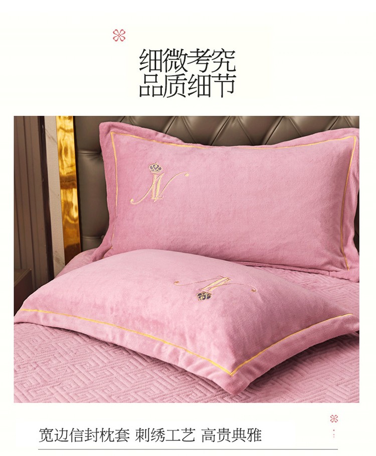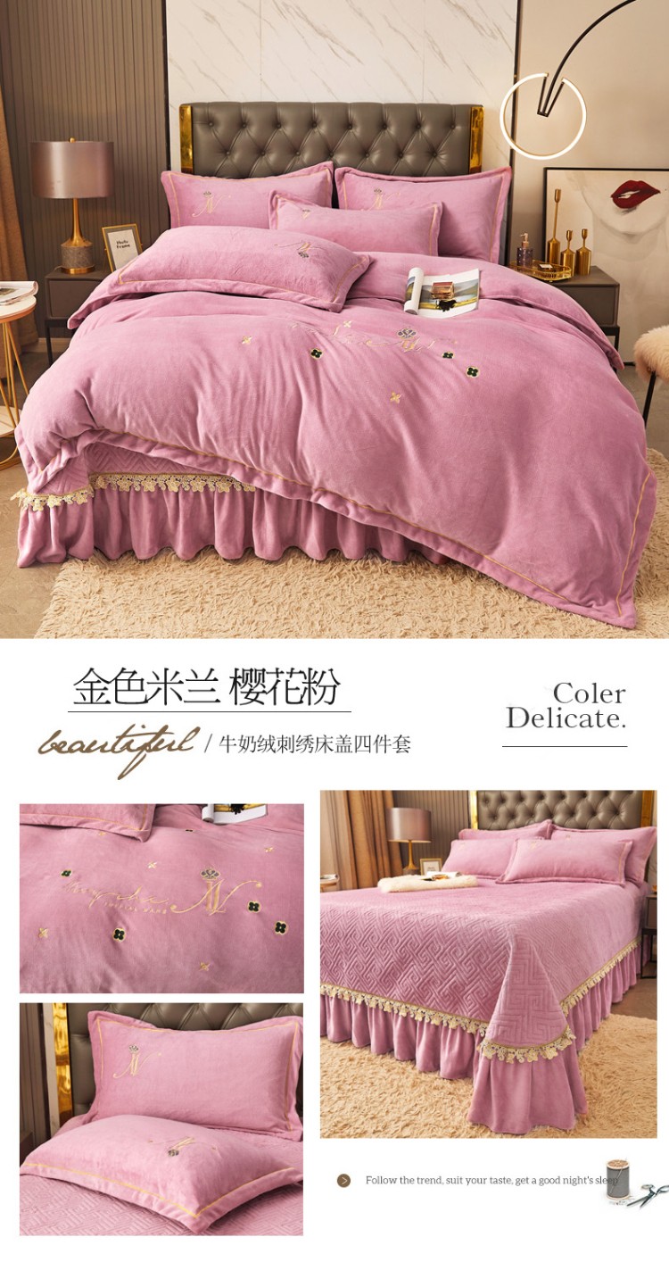 商品名称:菊上家纺 2021新款牛奶绒金色米兰系列-四件套 樱花粉