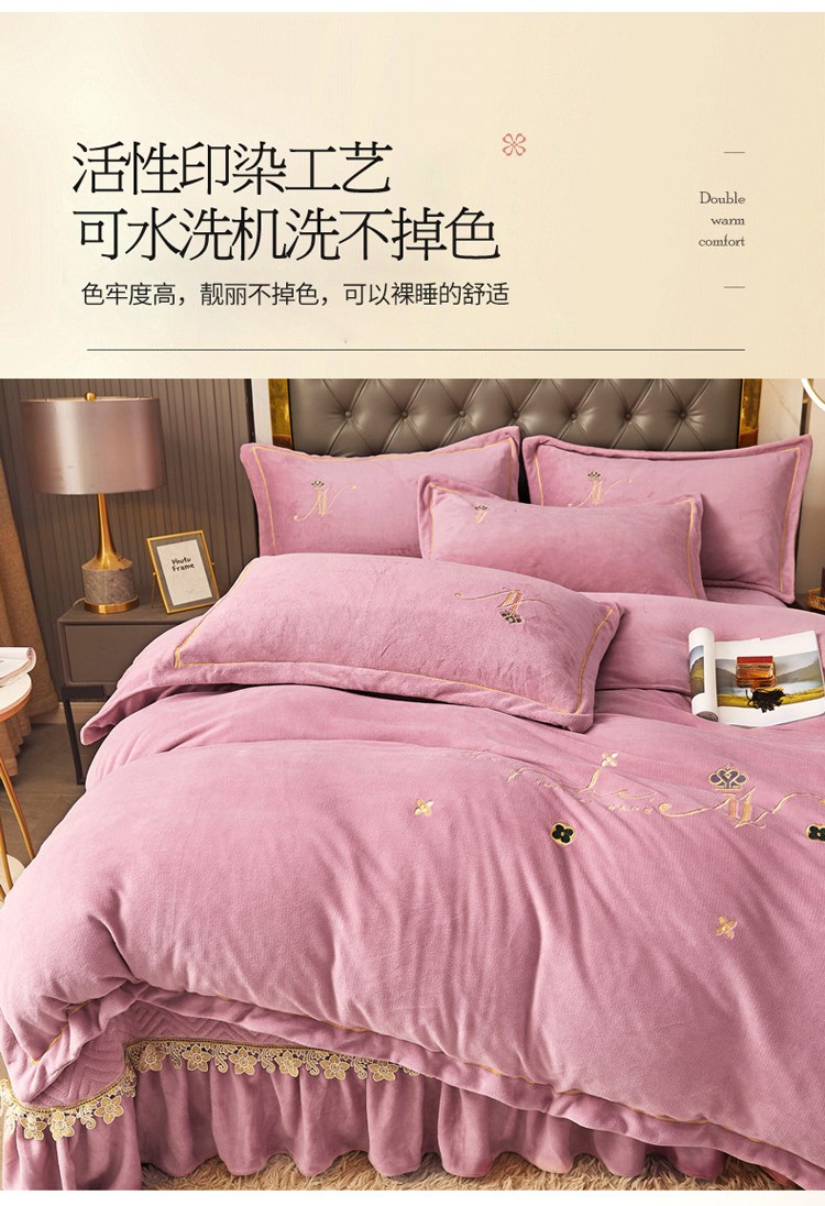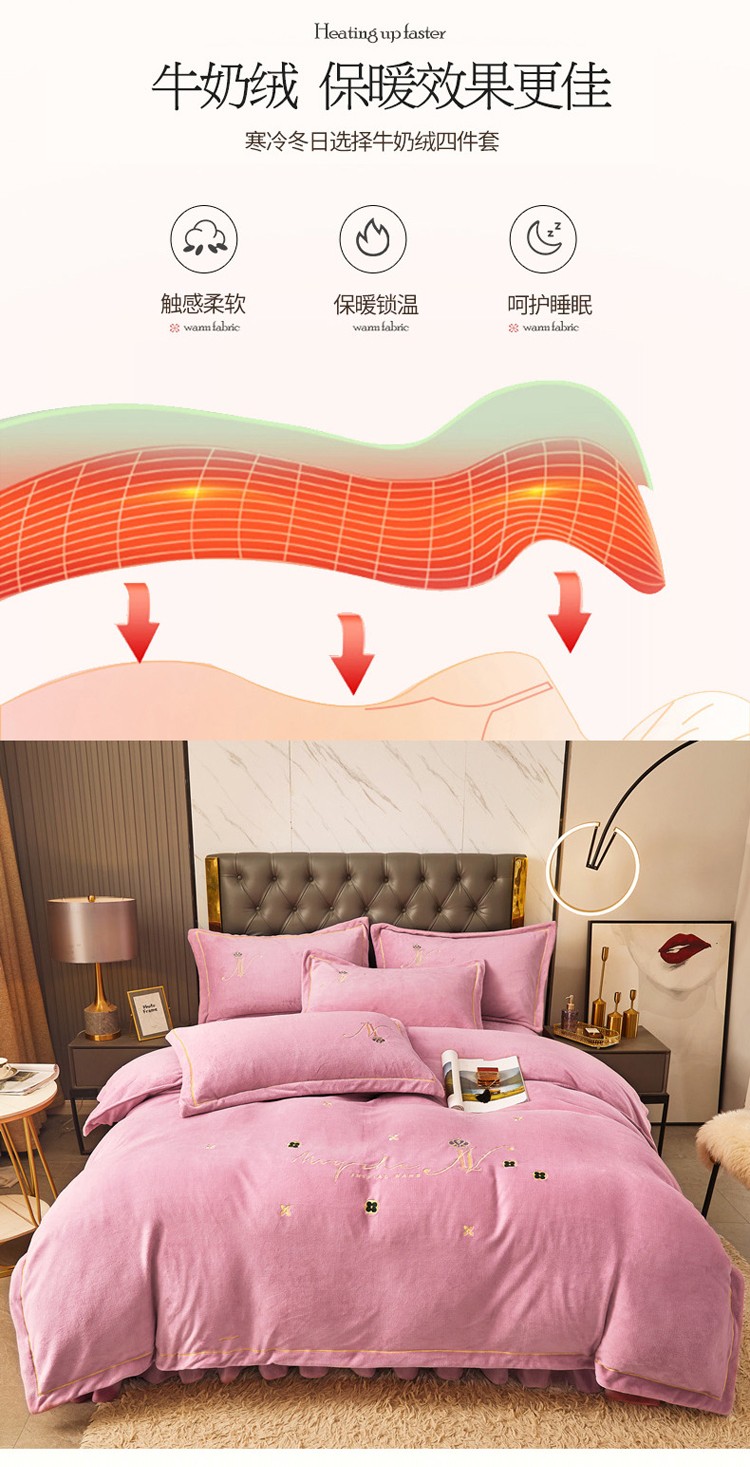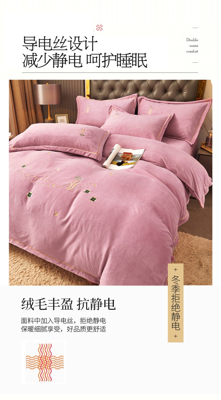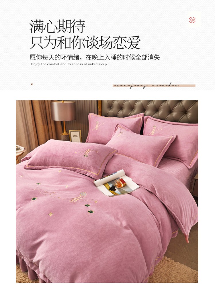 商品名称:菊上家纺 2021新款牛奶绒金色米兰系列-四件套 樱花粉