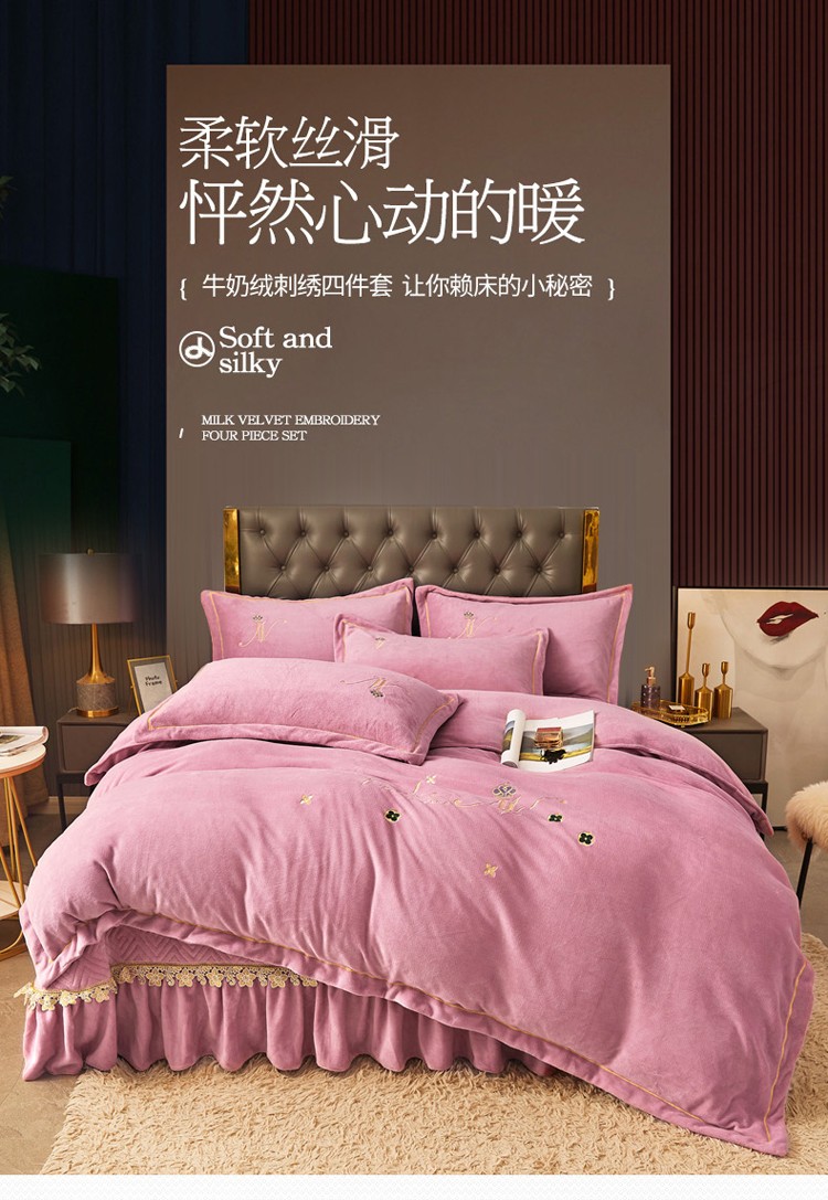 (总)菊上家纺 2025新品雕花牛奶绒绣花床盖款四件套-伊莉莎系列,伊莉莎-芝士白色,伊莉莎-奶奶灰色,伊莉莎-粉色