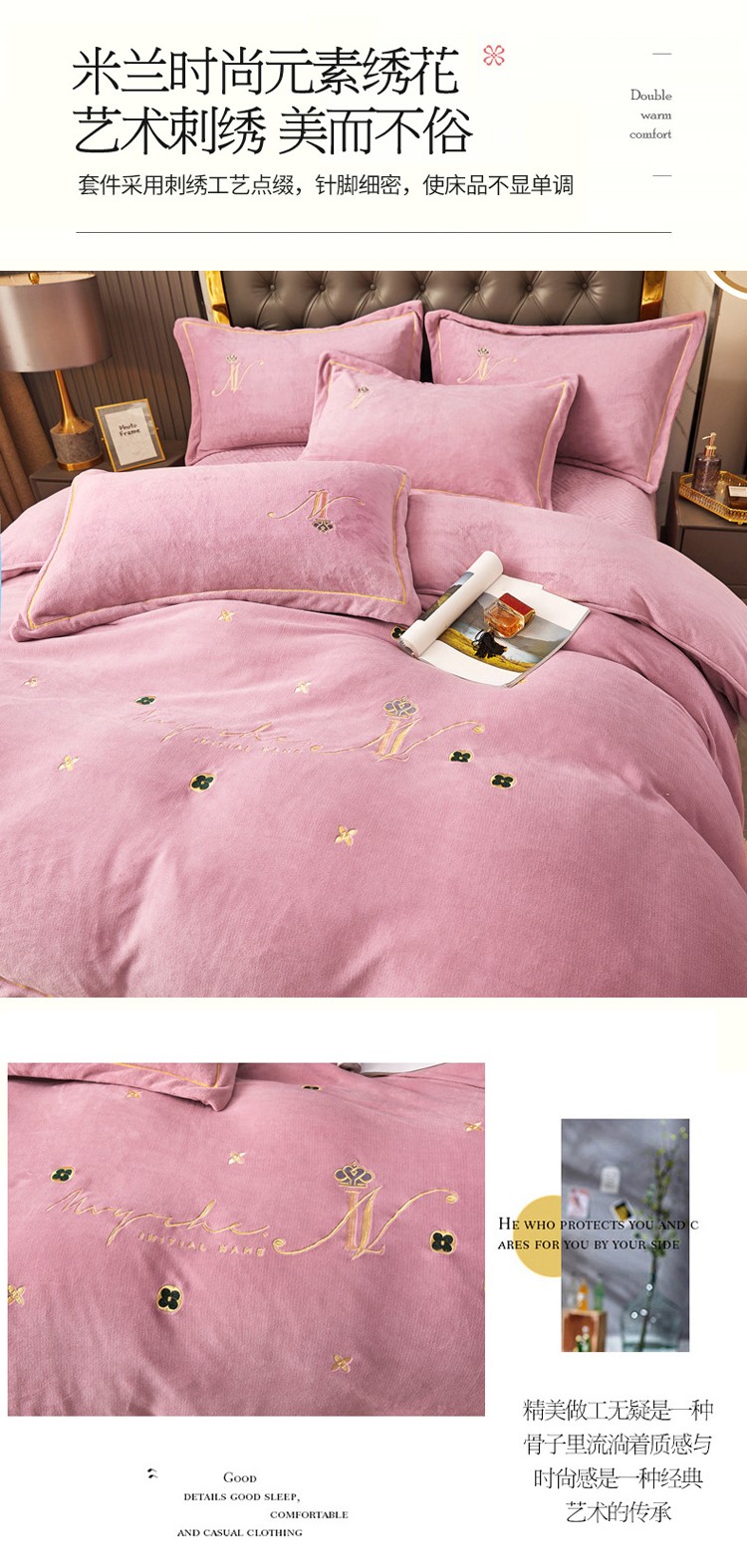 菊上家纺 2021新款牛奶绒金色米兰系列-四件套 樱花粉