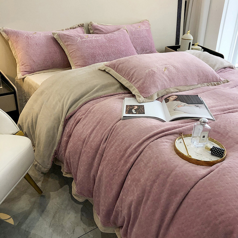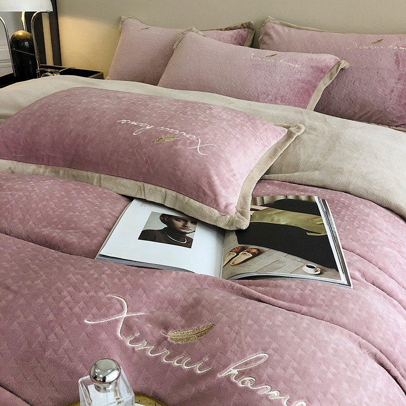 (总)馨蕊家居 2025新款意大利进口高精密刺绣拼角工艺秋冬法式高奢雪貂绒系列-绒雪芙 会员-10【券后控价358/378】,绒雪芙-奶咖,绒雪芙-蔷薇粉,绒雪芙-婉若紫,绒雪芙-月光白