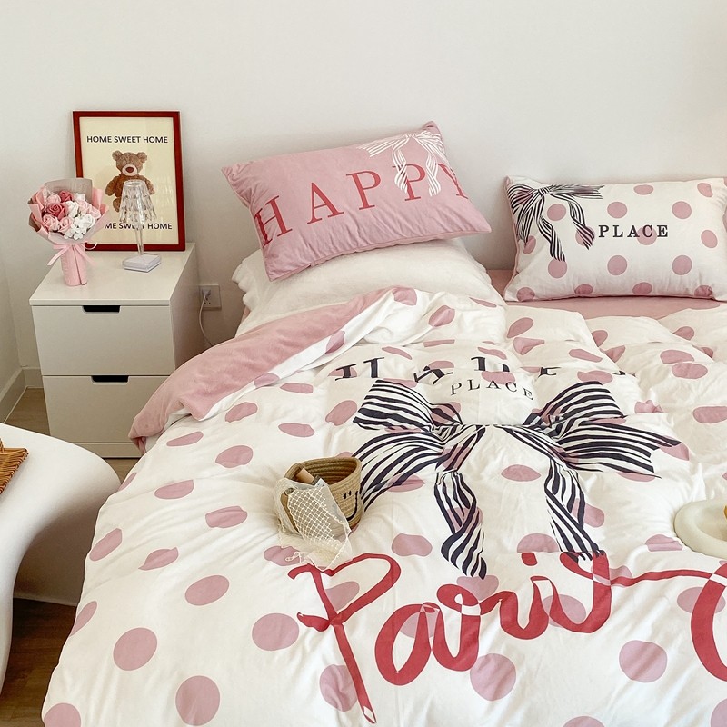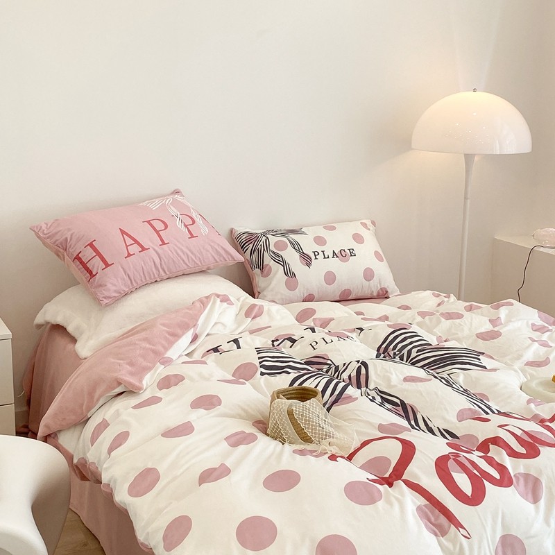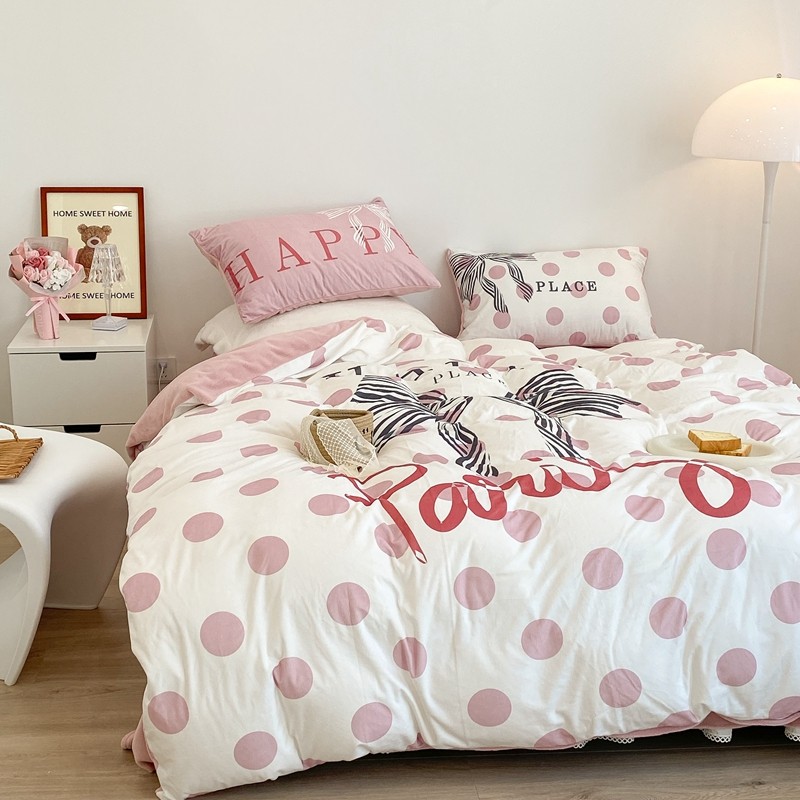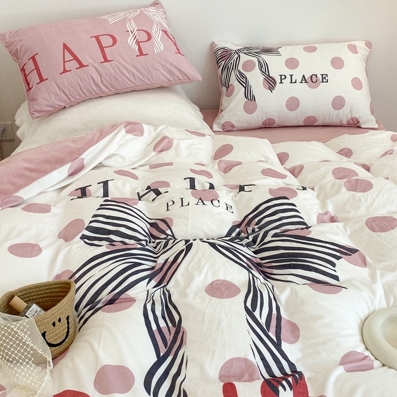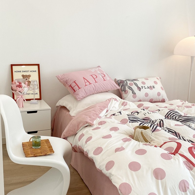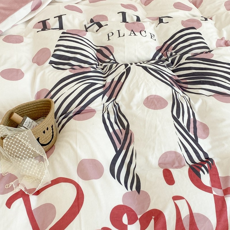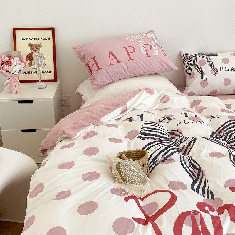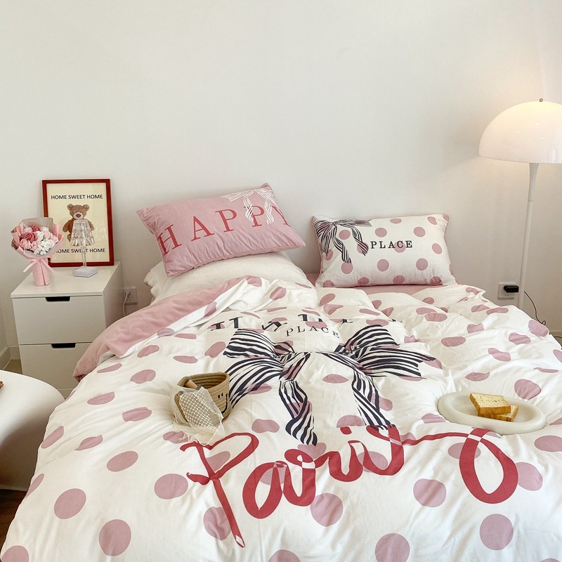 昔可家纺 2021新款大版宝宝牛奶绒四件套 粉波点蝴蝶结