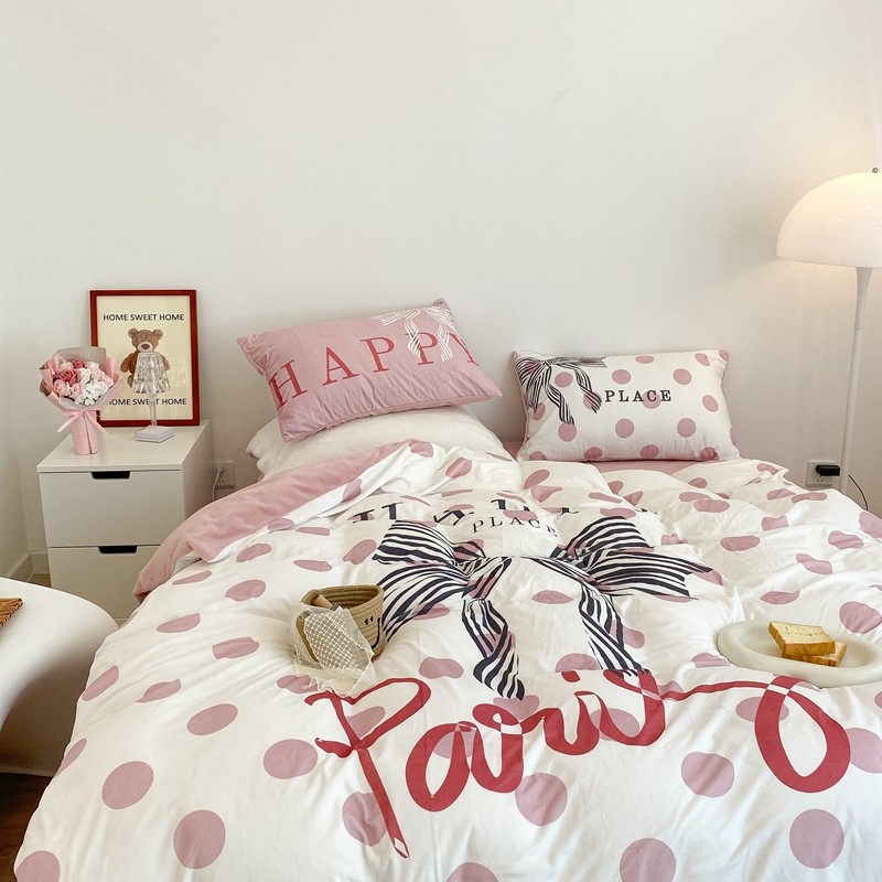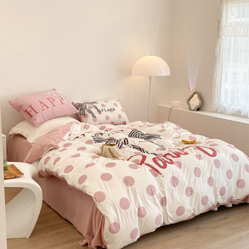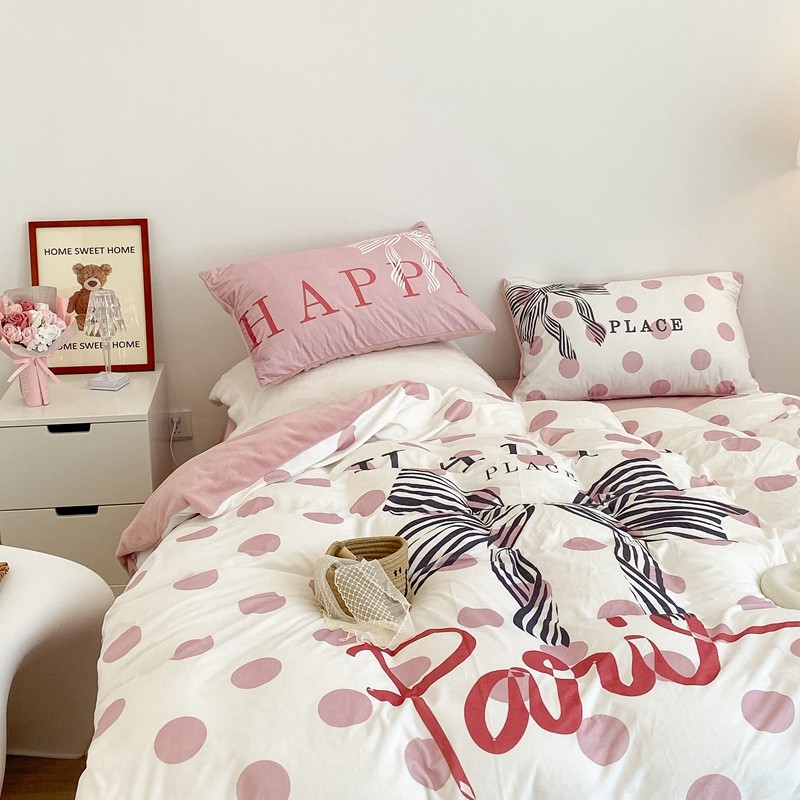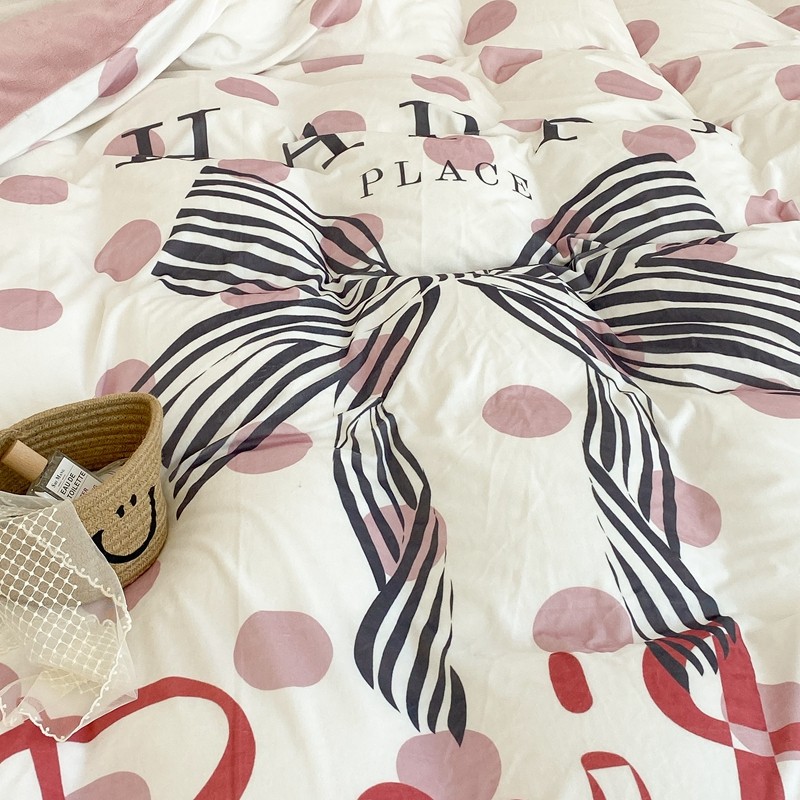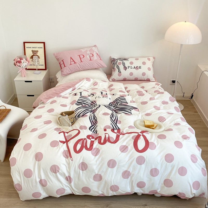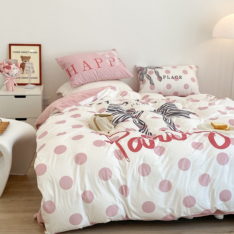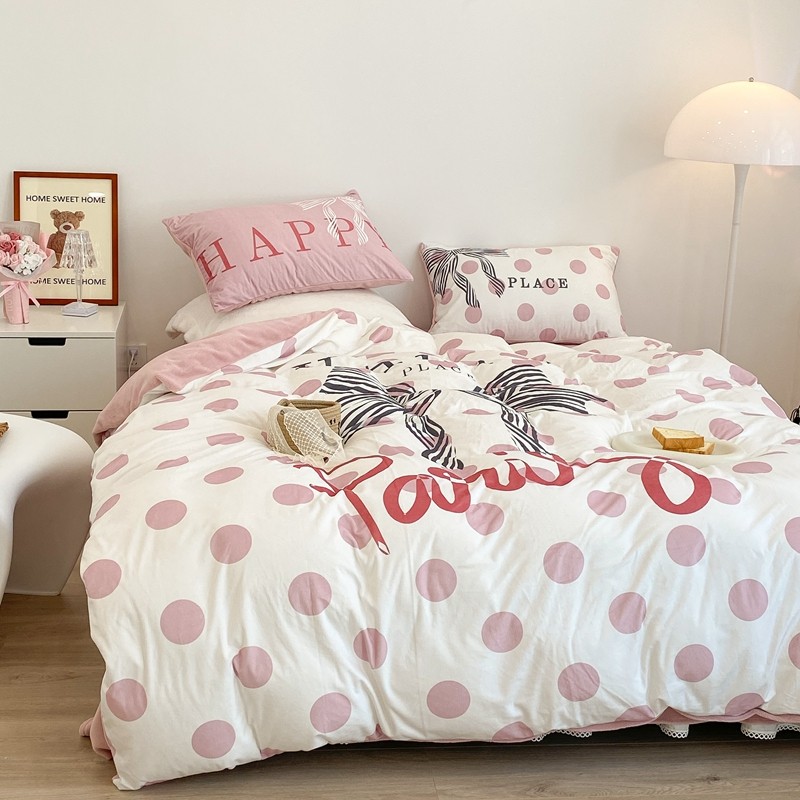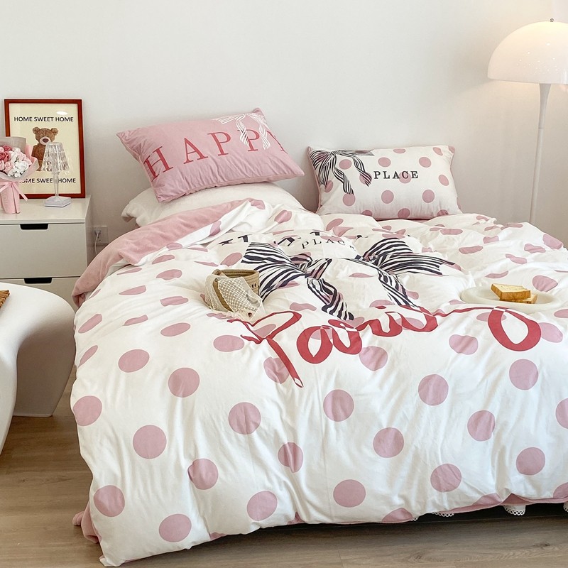 昔可家纺 2021新款大版宝宝牛奶绒四件套 粉波点蝴蝶结