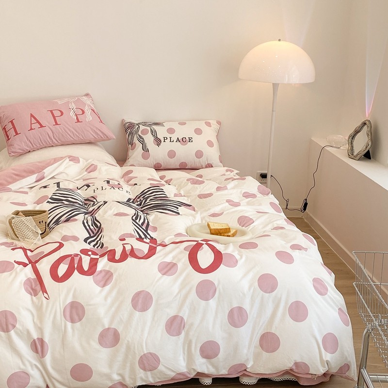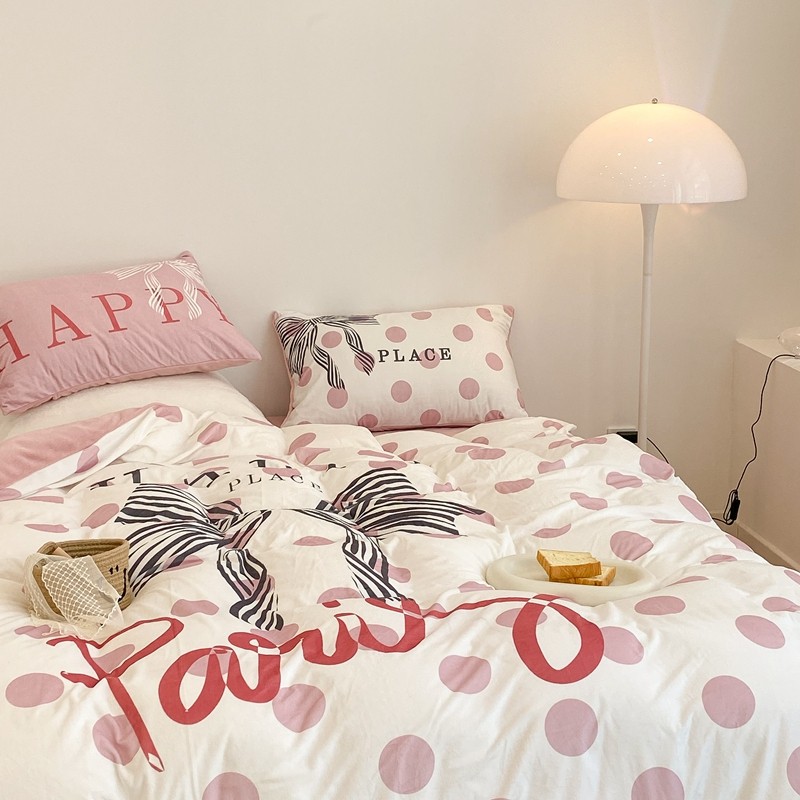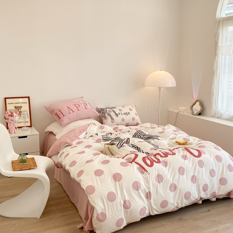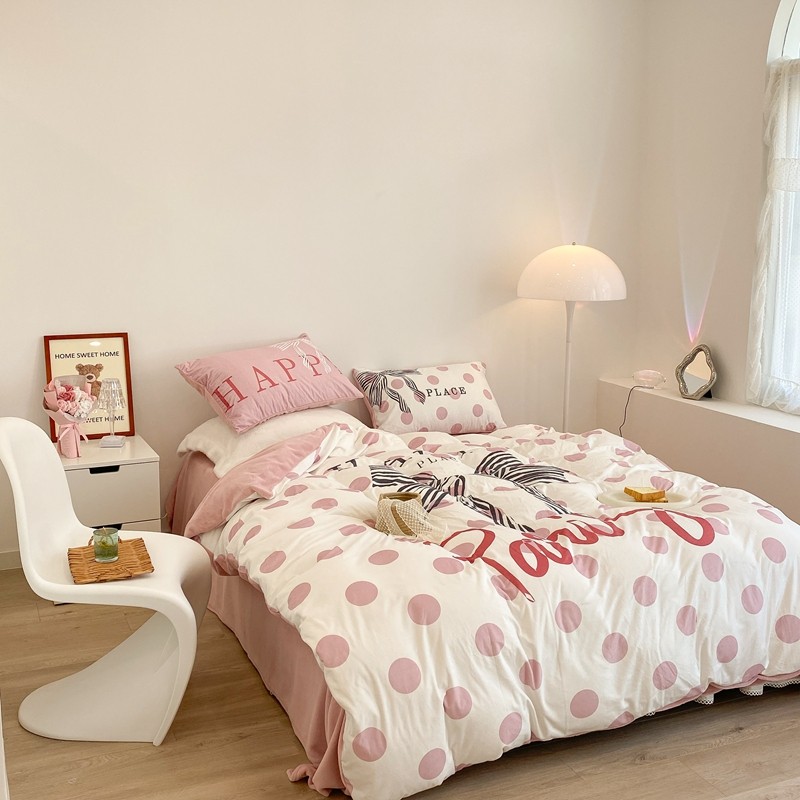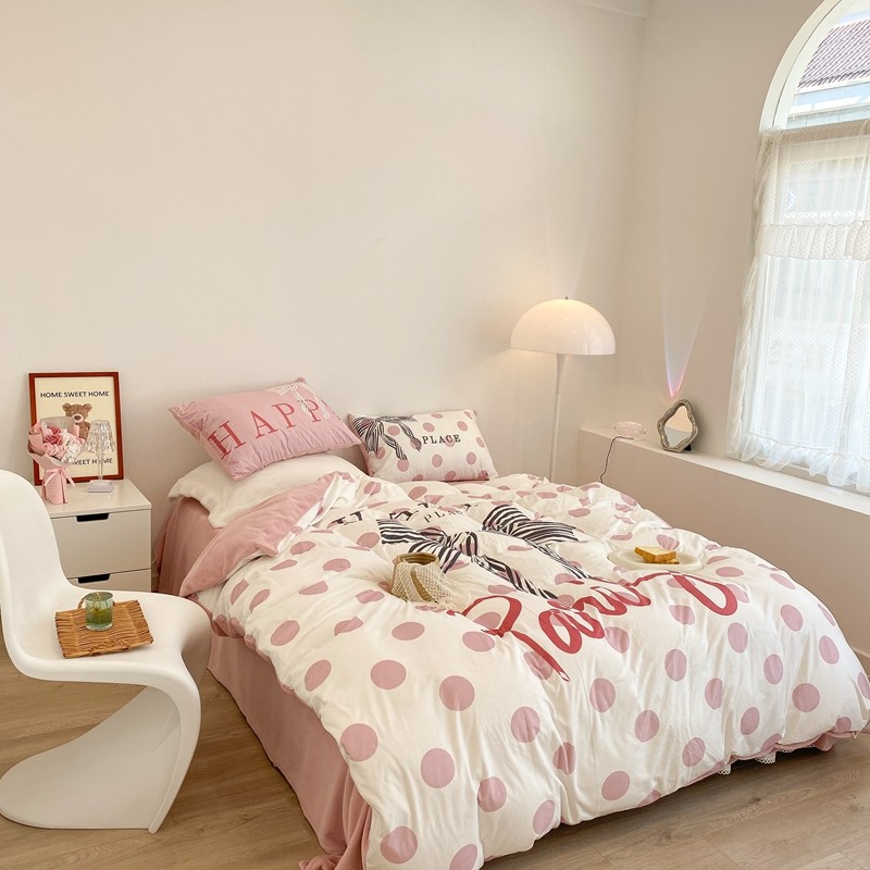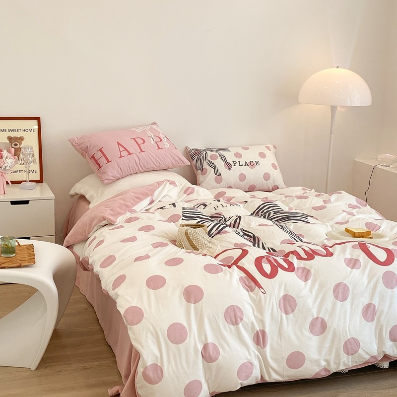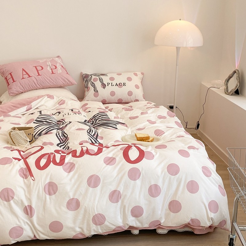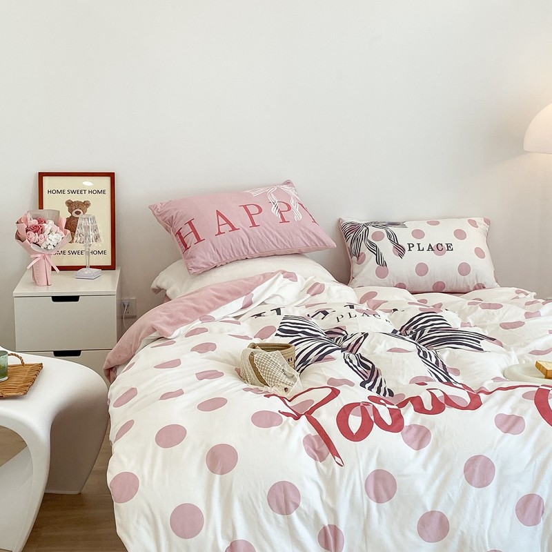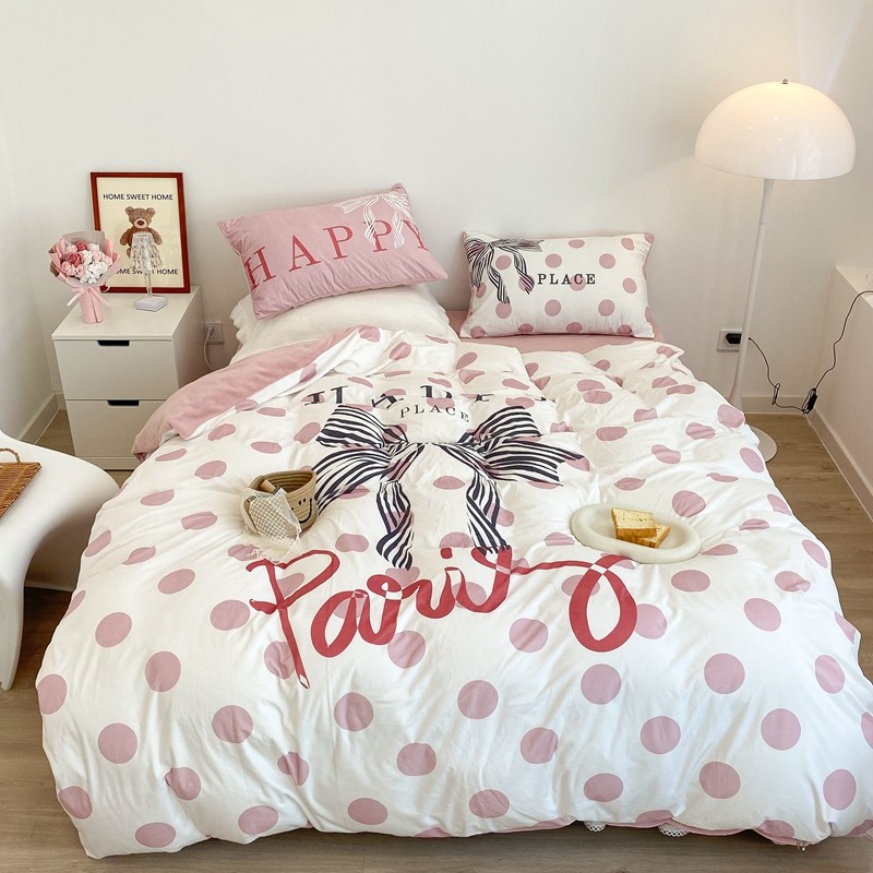昔可家纺 2021新款大版宝宝牛奶绒四件套 粉波点蝴蝶结
