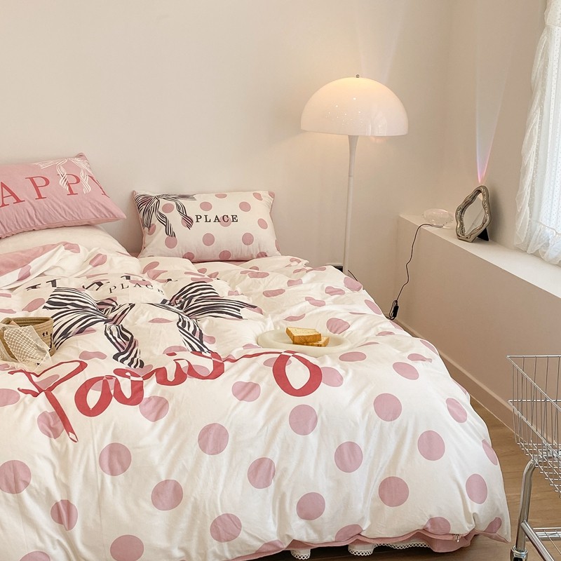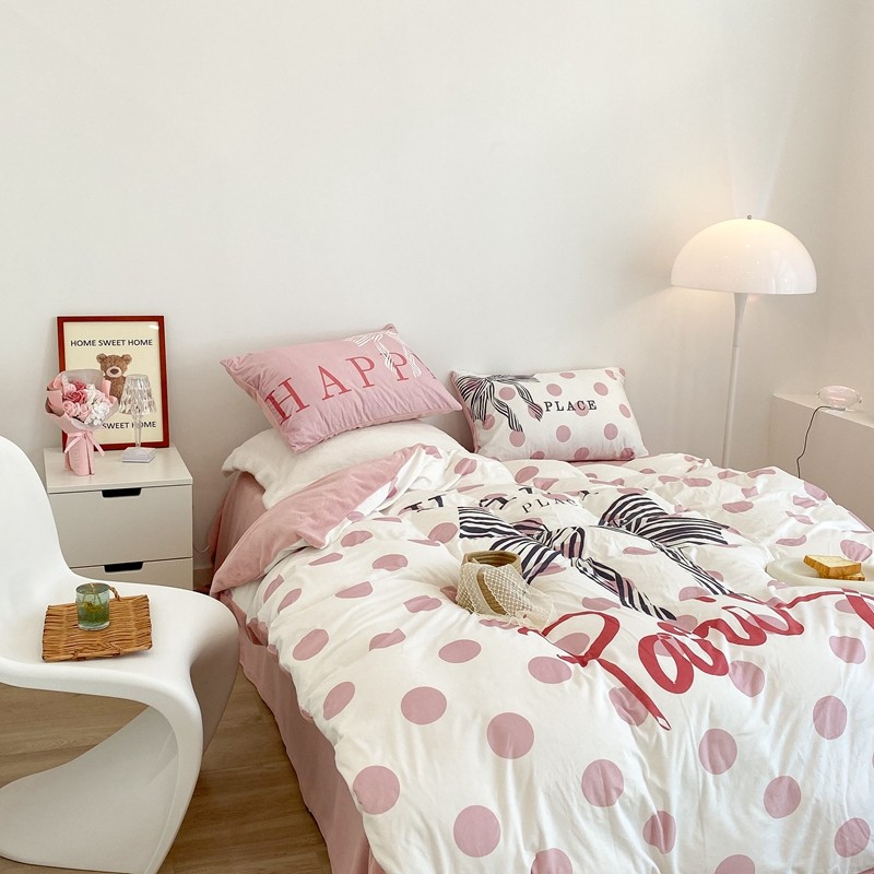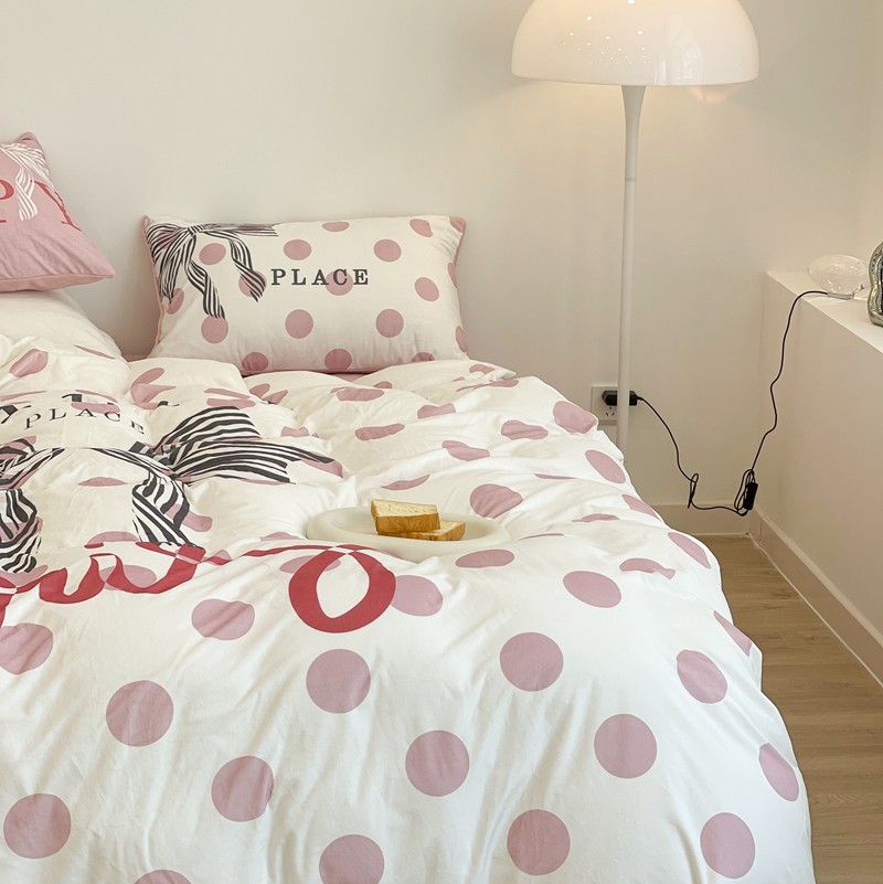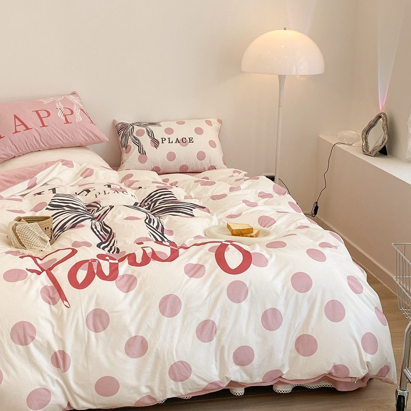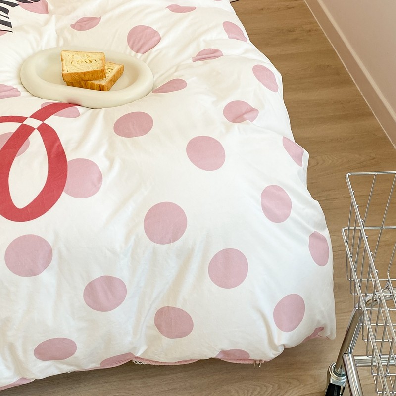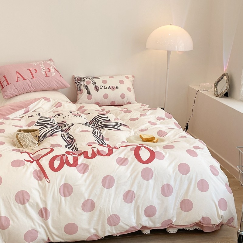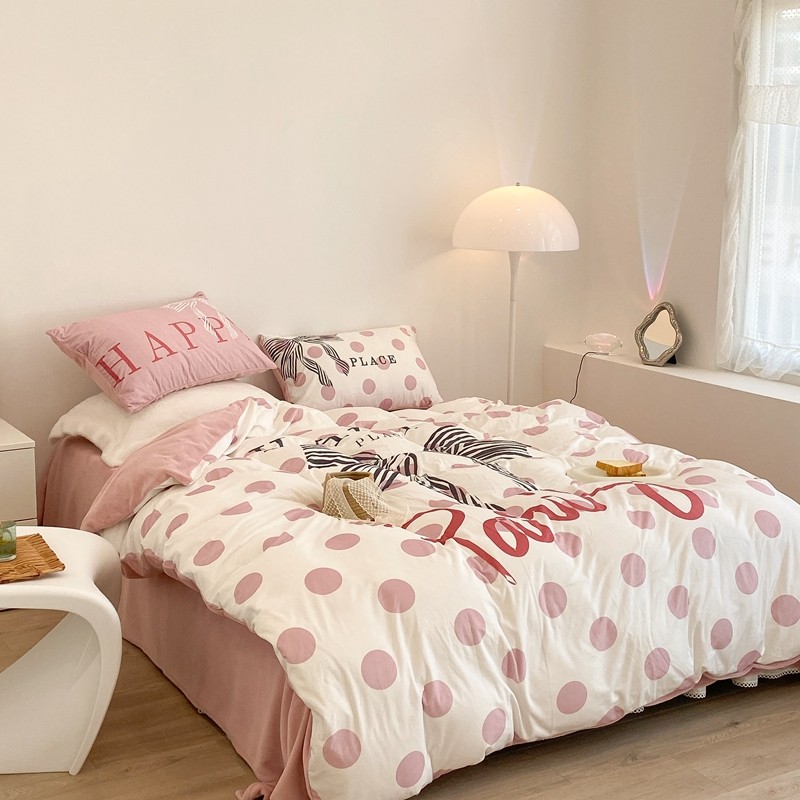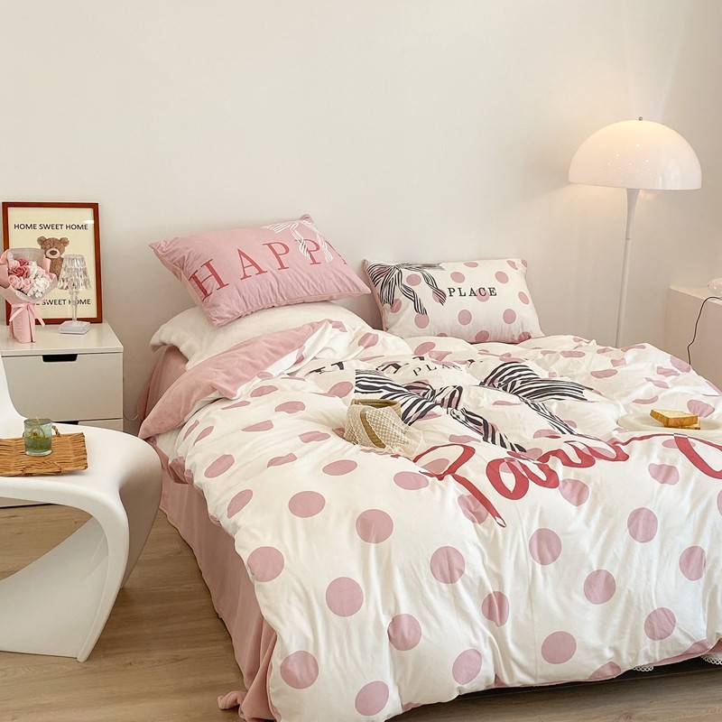 昔可家纺 2021新款大版宝宝牛奶绒四件套 粉波点蝴蝶结