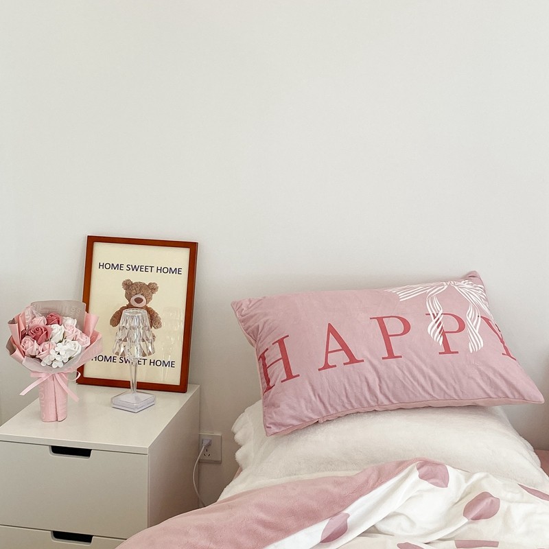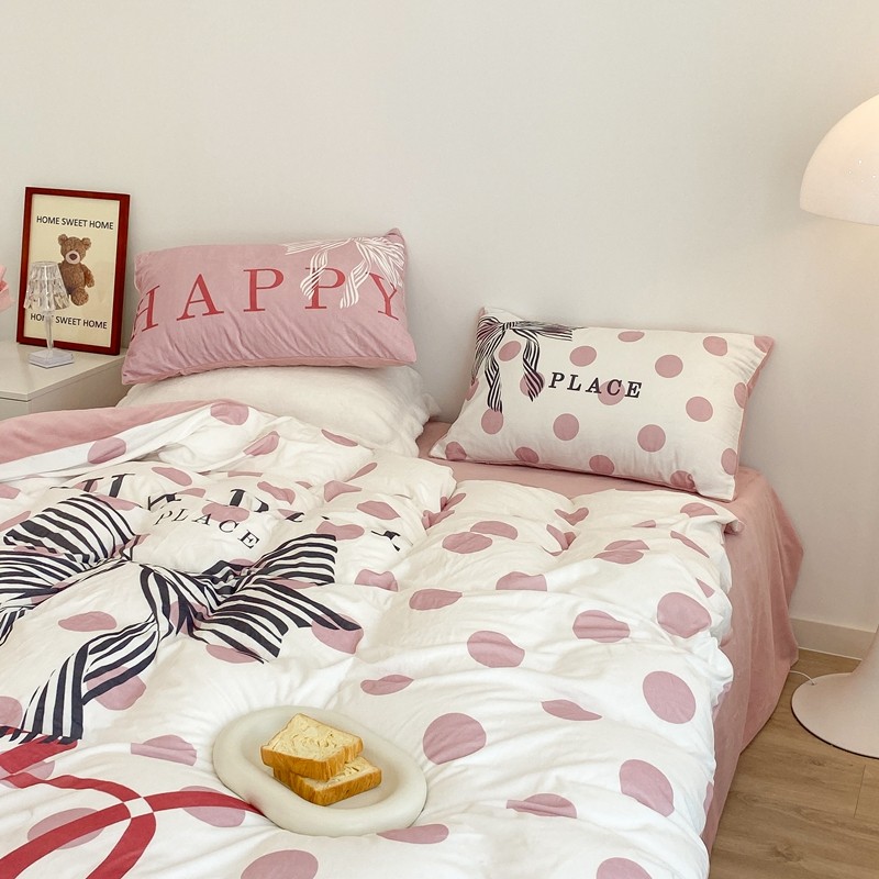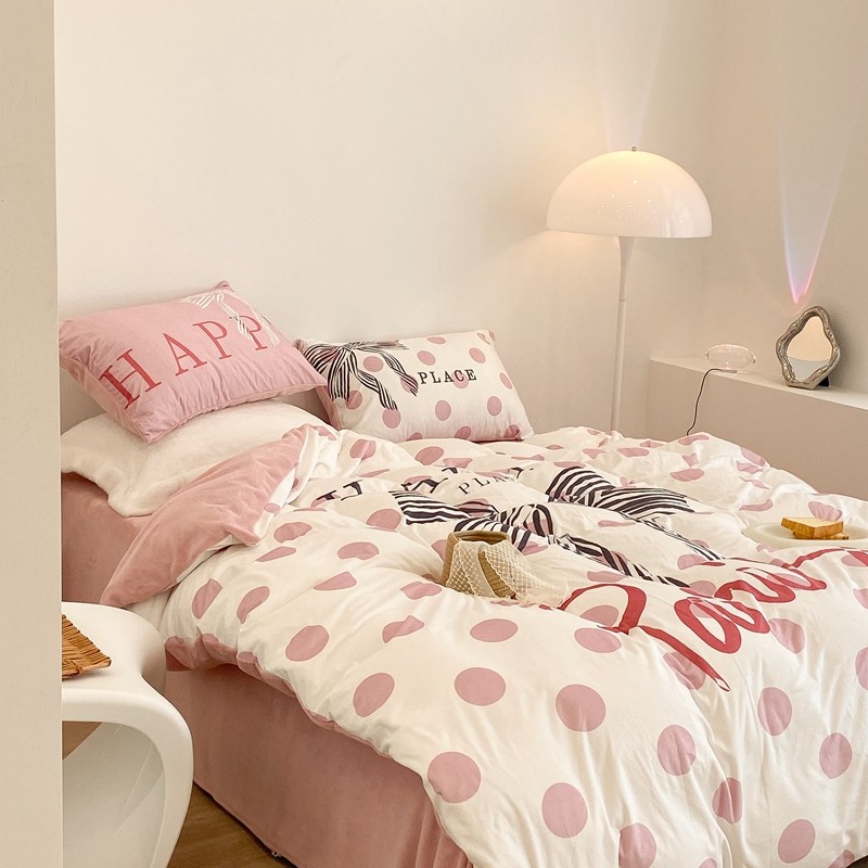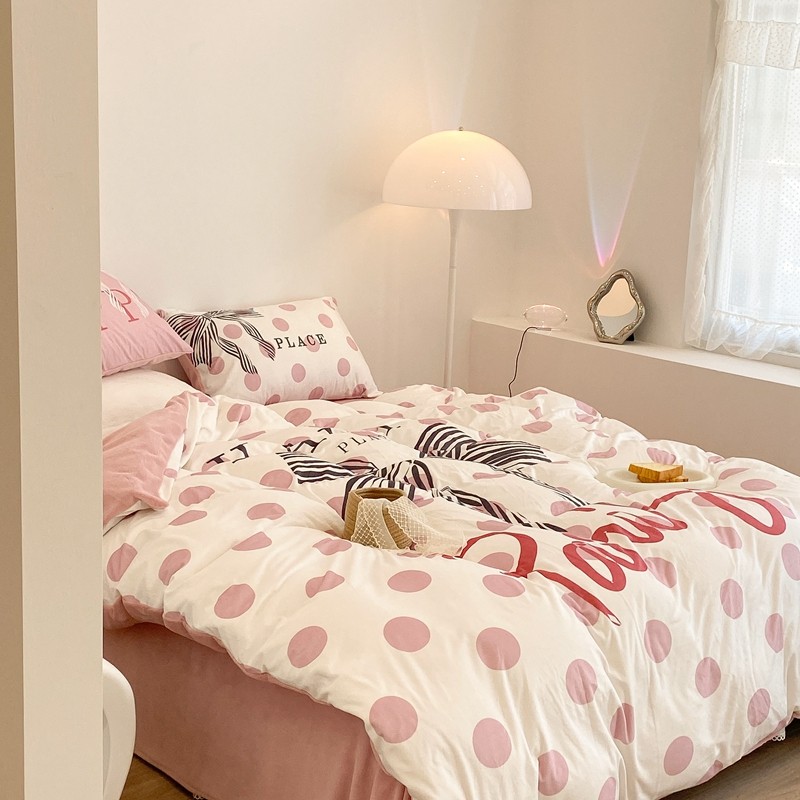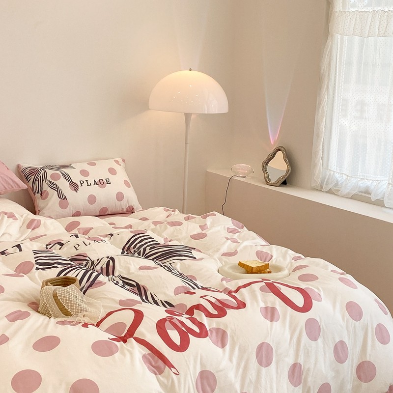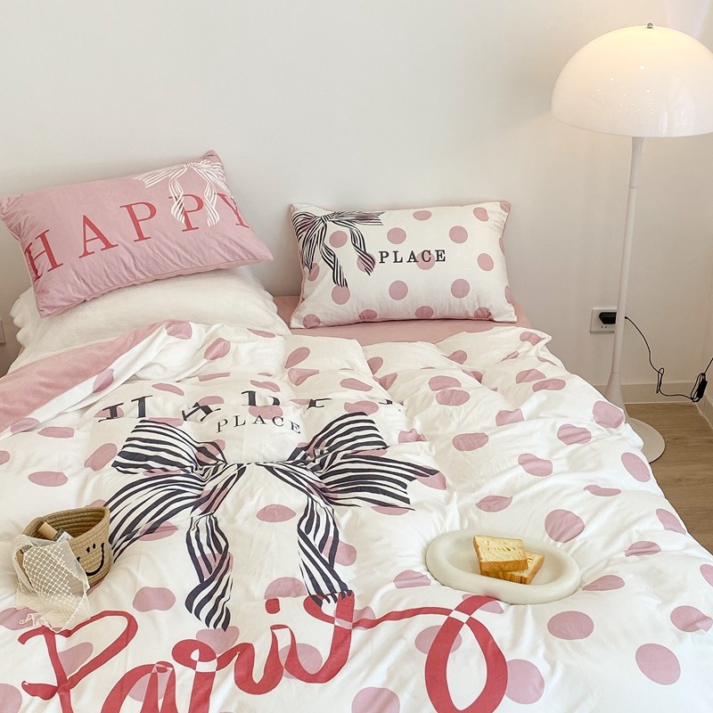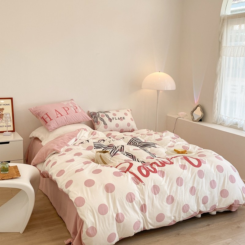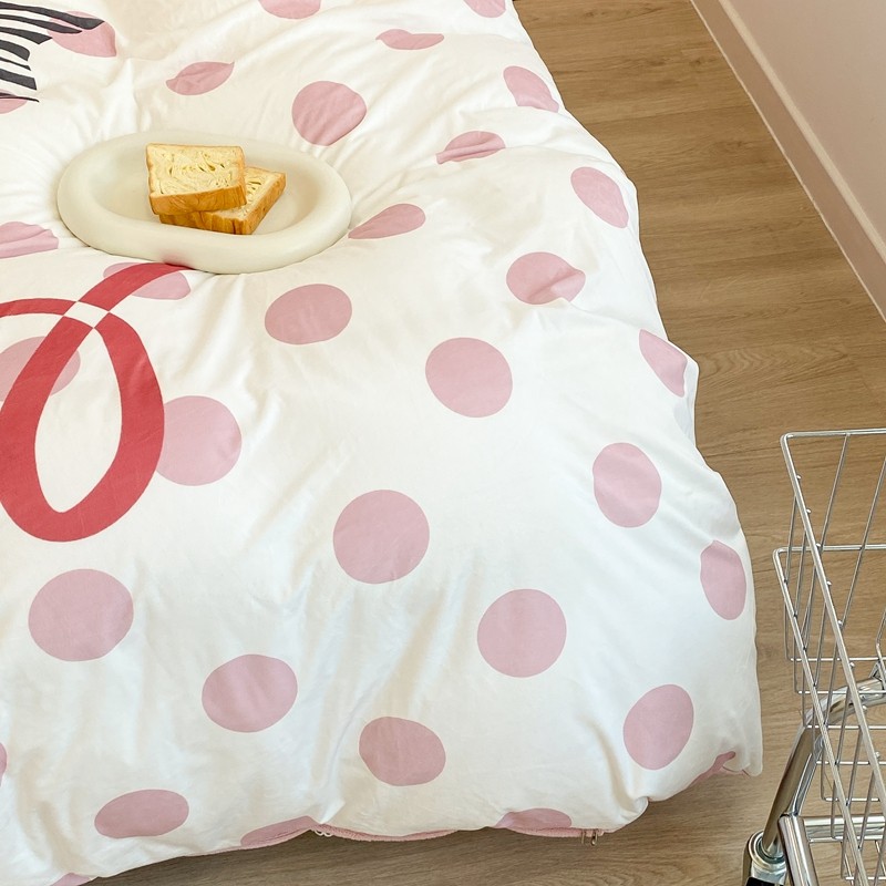 昔可家纺 2021新款大版宝宝牛奶绒四件套 粉波点蝴蝶结