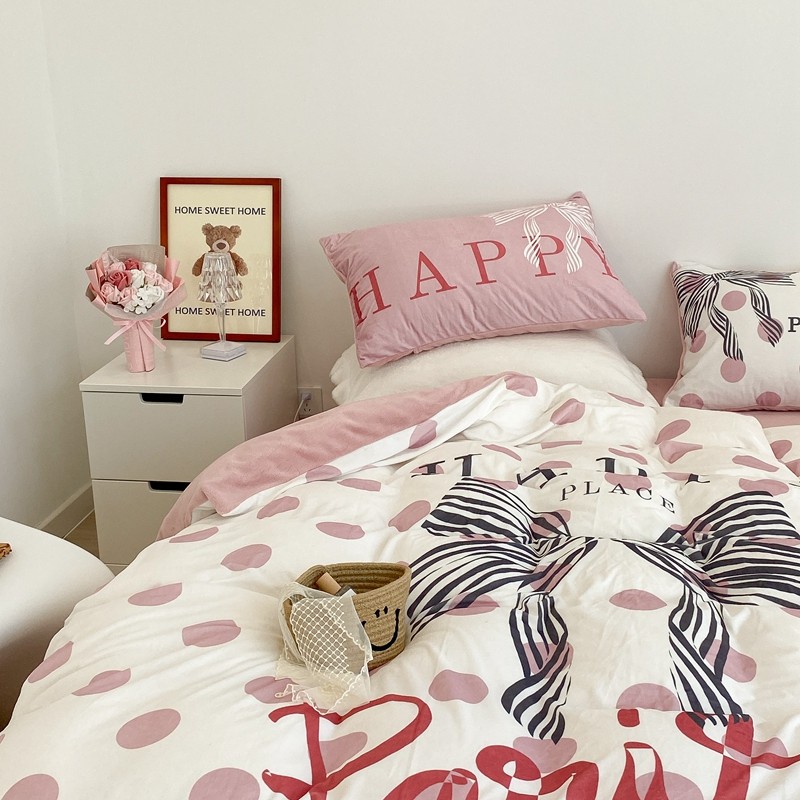 (总)昔可家纺 2024新款印花牛奶绒四件套系列-ins少女系列,芭蕾蛋糕,芭蕾美学,粉格蝴蝶结,黑粉芭蕾蝴蝶结,蓝格蝴蝶结,樱桃奶油蛋糕