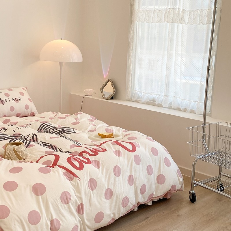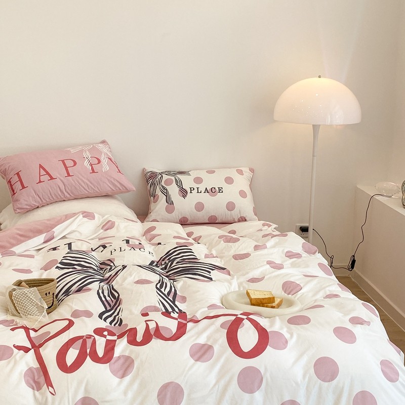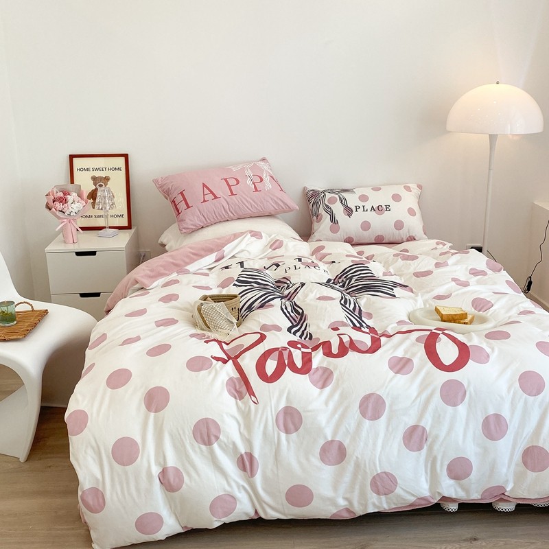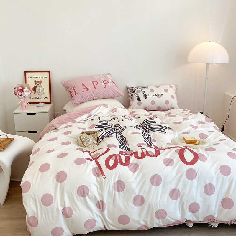 商品名称:昔可家纺 2021新款大版宝宝牛奶绒四件套 粉波点蝴蝶结