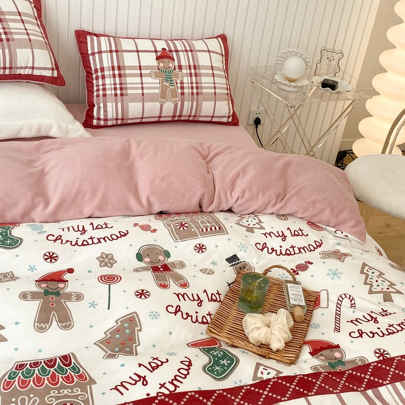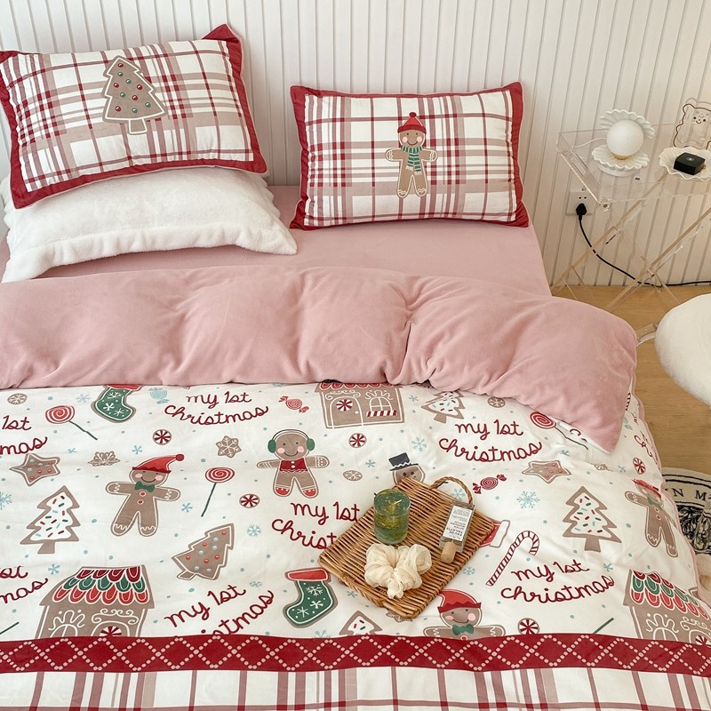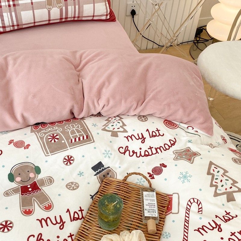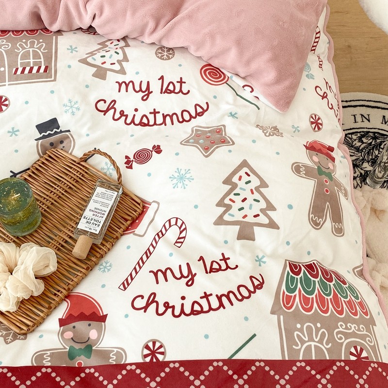 昔可家纺 2021新款大版宝宝牛奶绒四件套 圣诞礼物