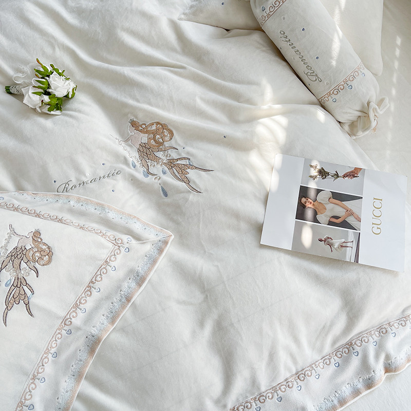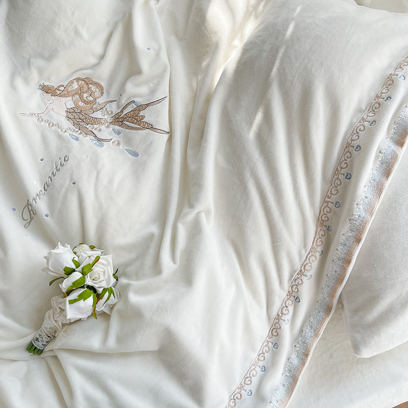 馨蕊家居 2021秋冬轻奢煦暖绒系列新品-美人鱼 美人鱼-月光白