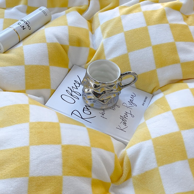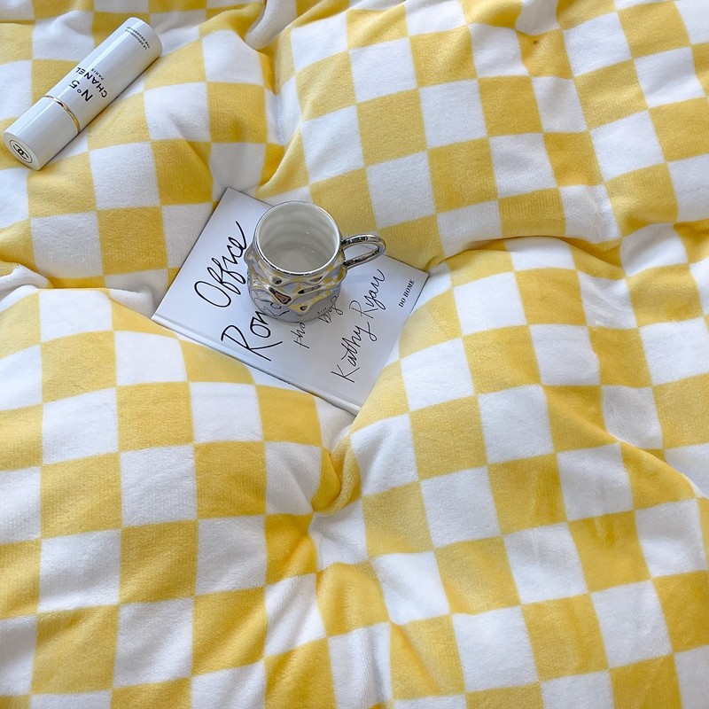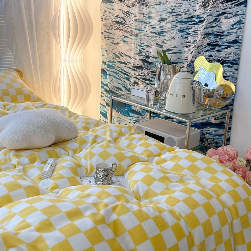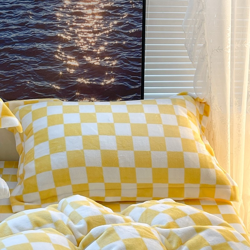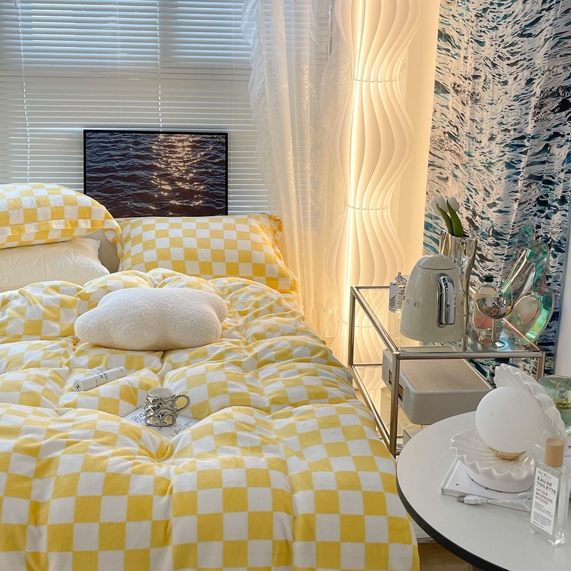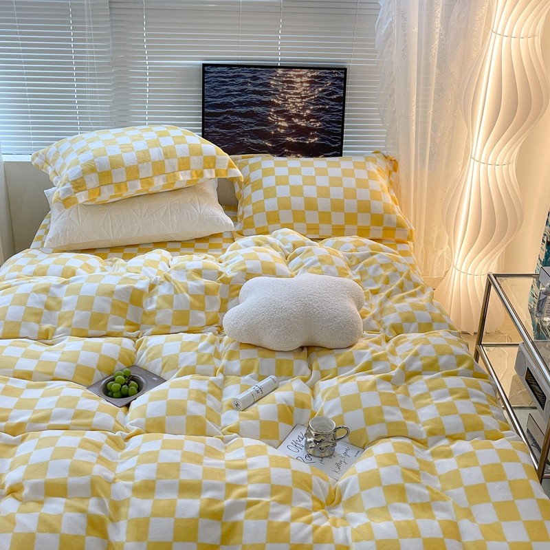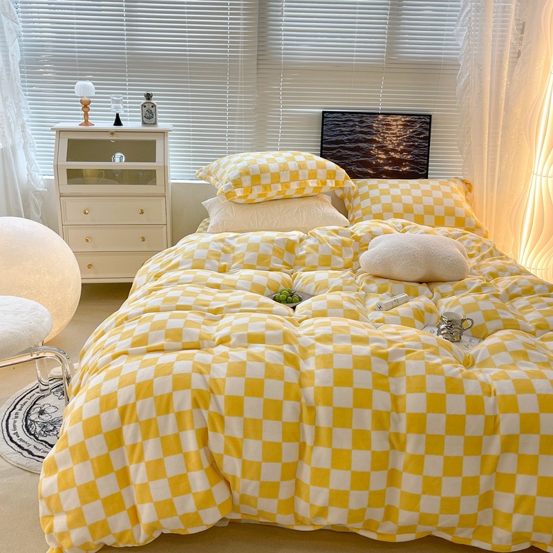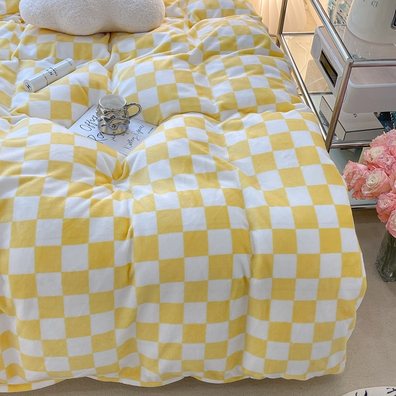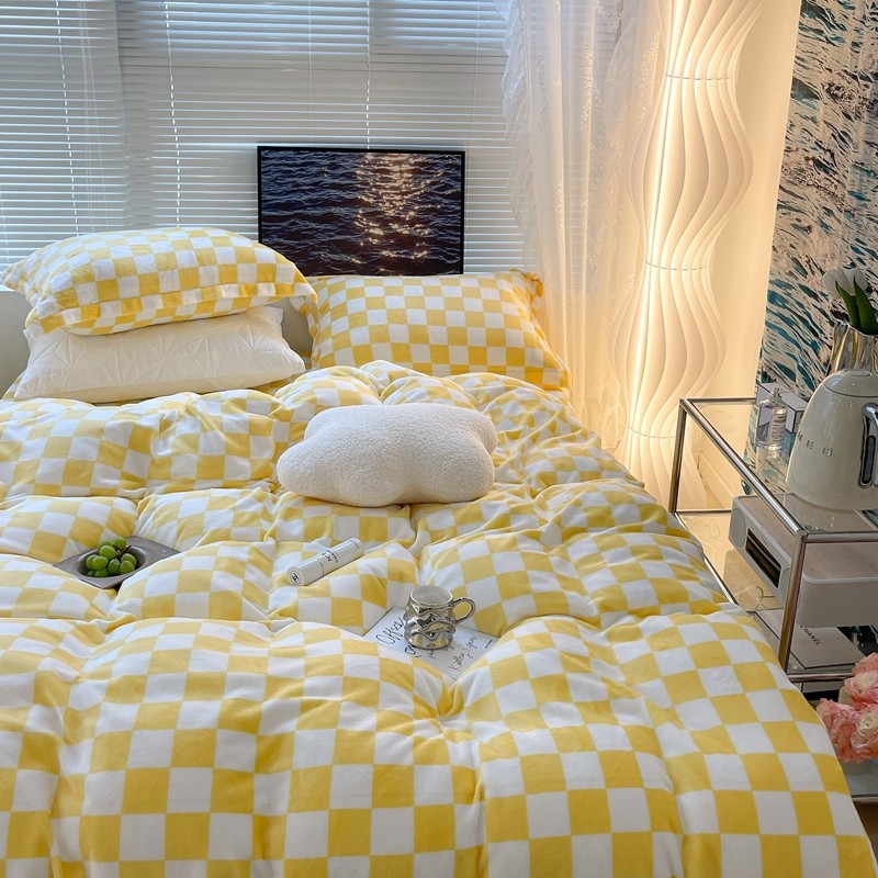 昔可家纺 2021新款牛奶绒棋盘格系列四件套 黄