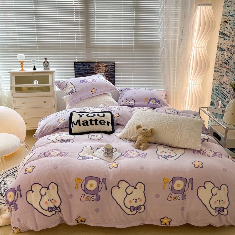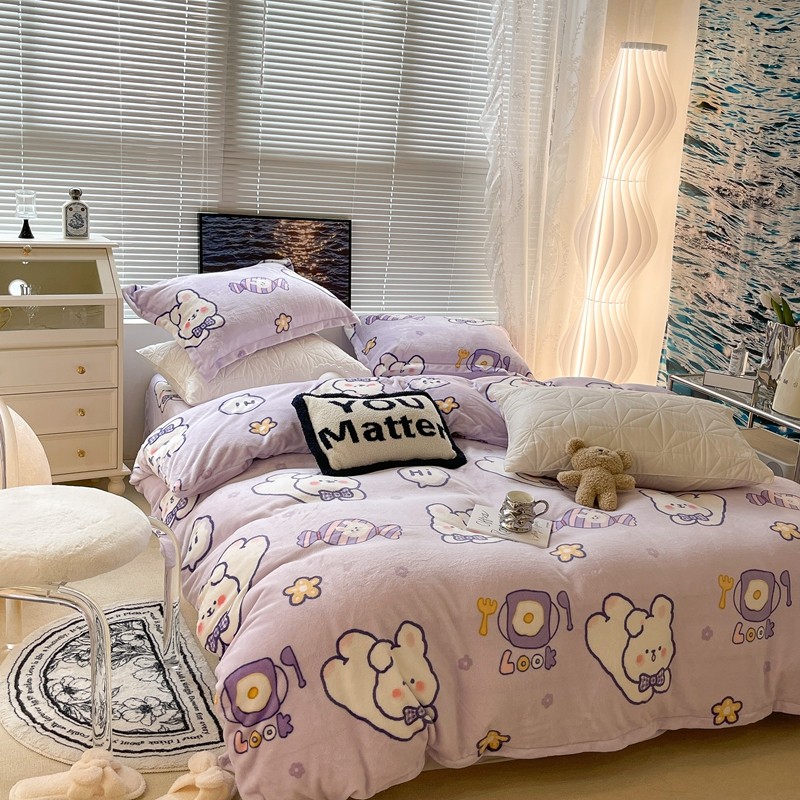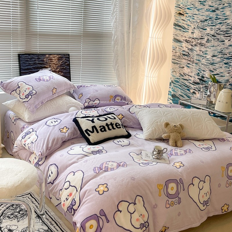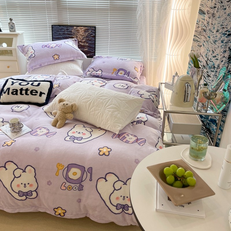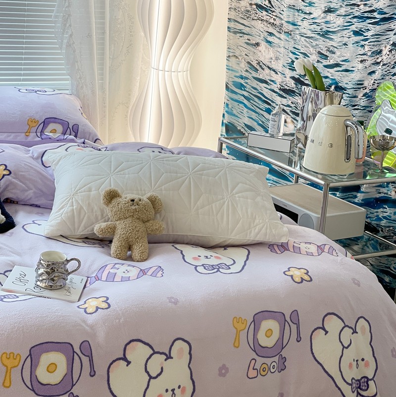 昔可家纺 2021新款牛奶绒四件套-一批 梦幻紫兔兔
