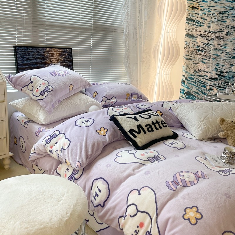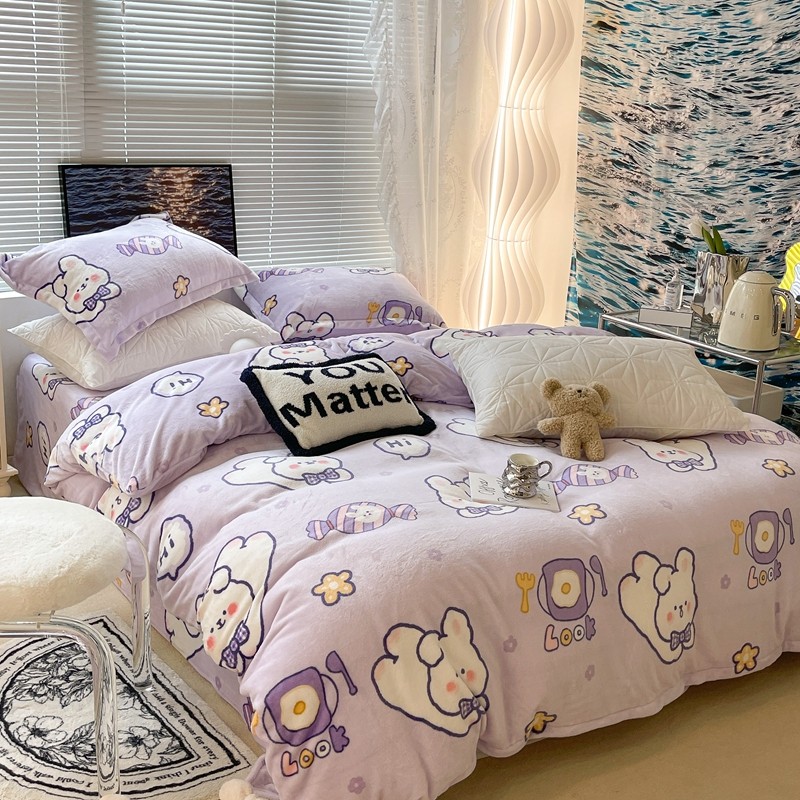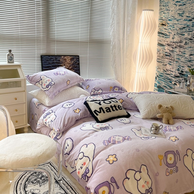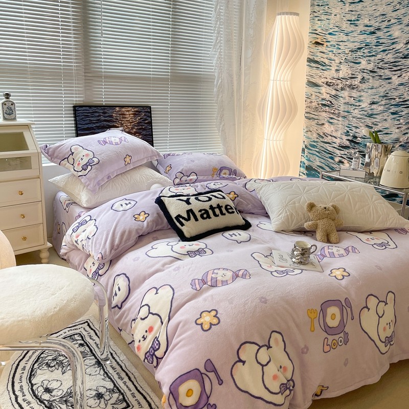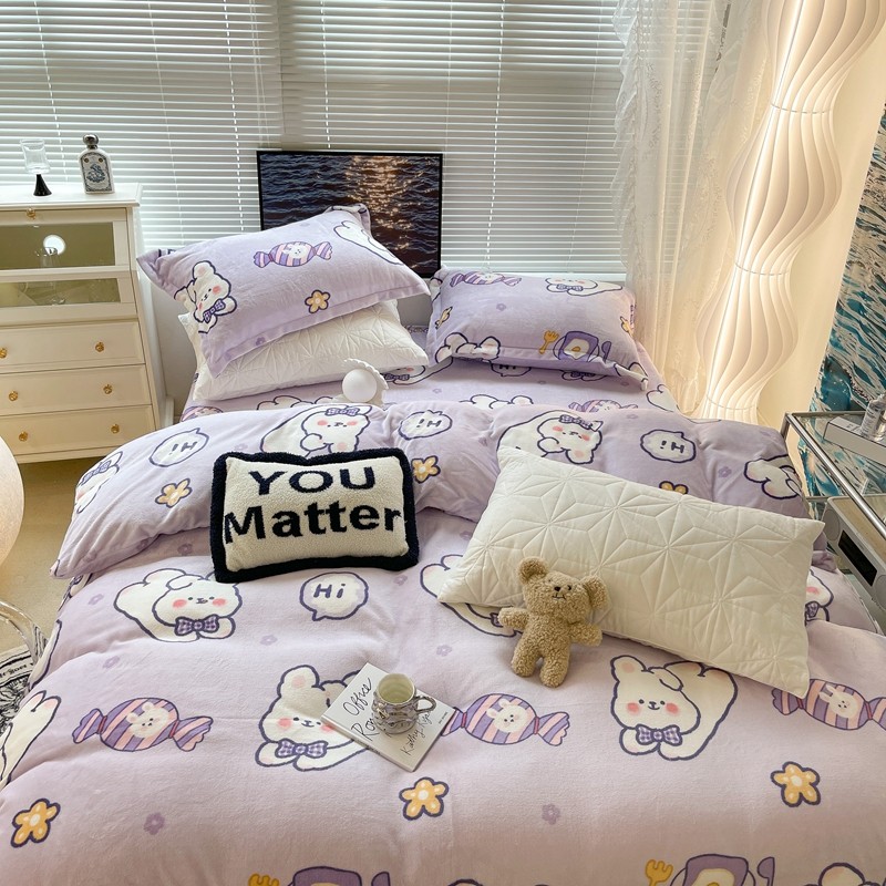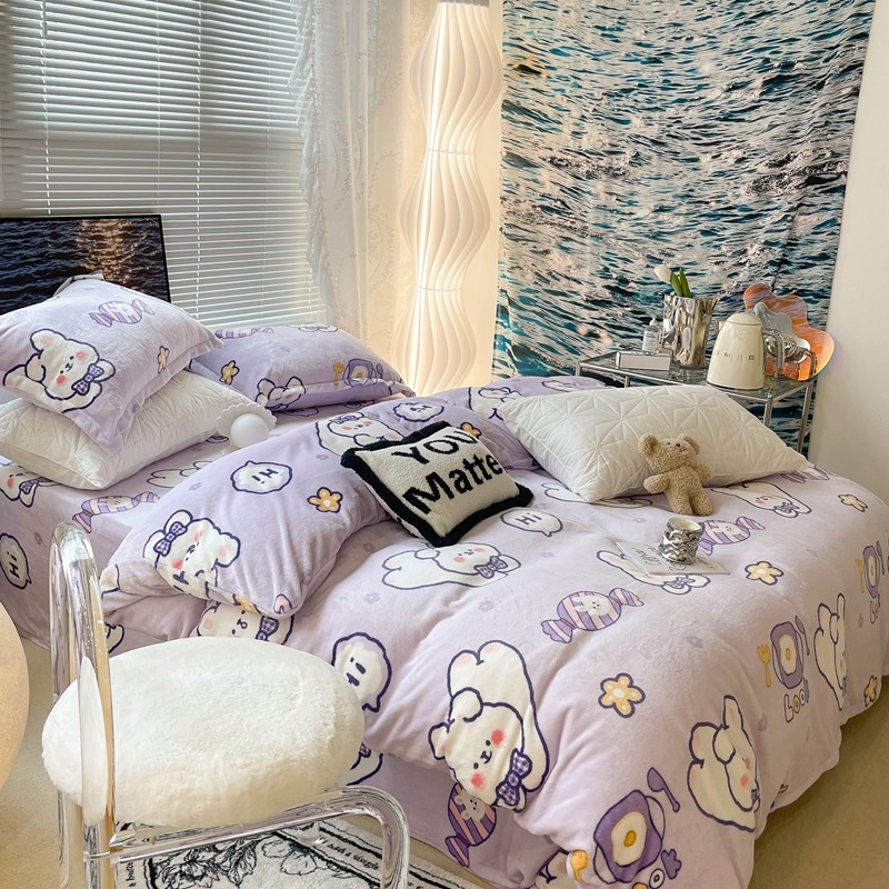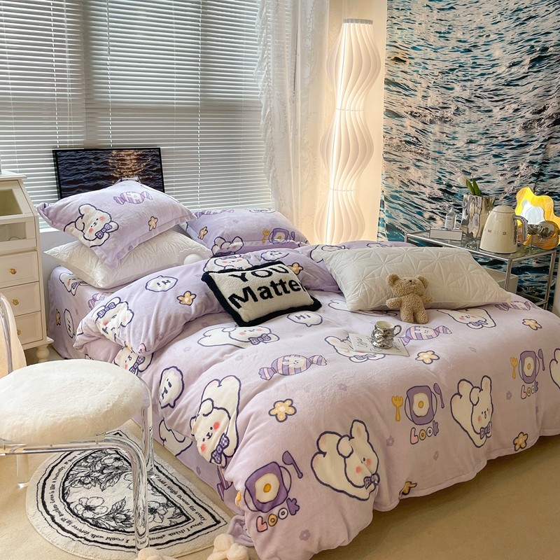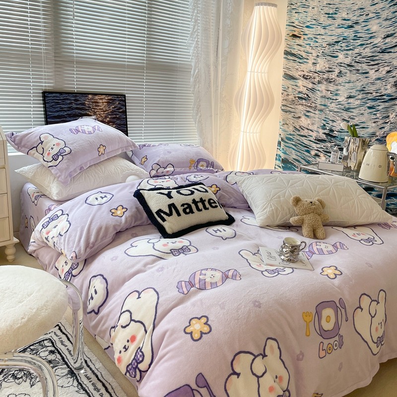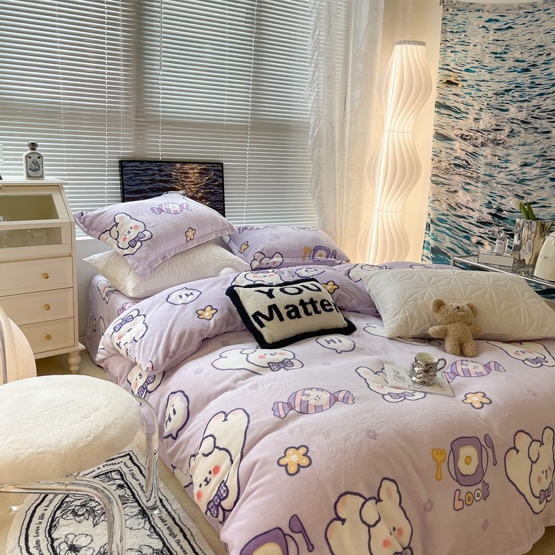 (总)昔可家纺 2024新款印花牛奶绒四件套系列-洛丽塔风,萝莉小兔,小熊烘焙屋,小熊玩偶屋