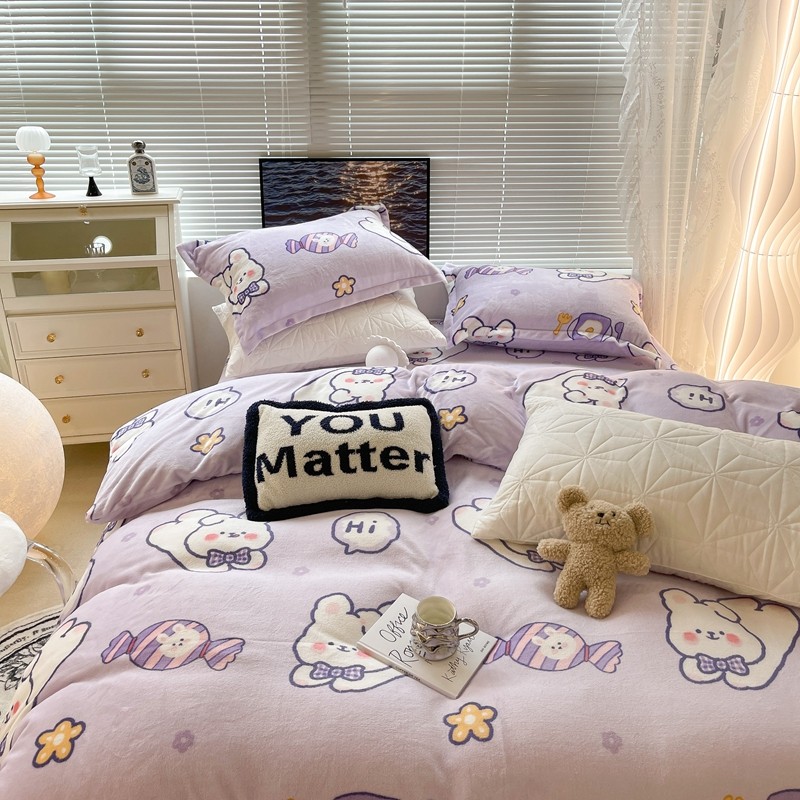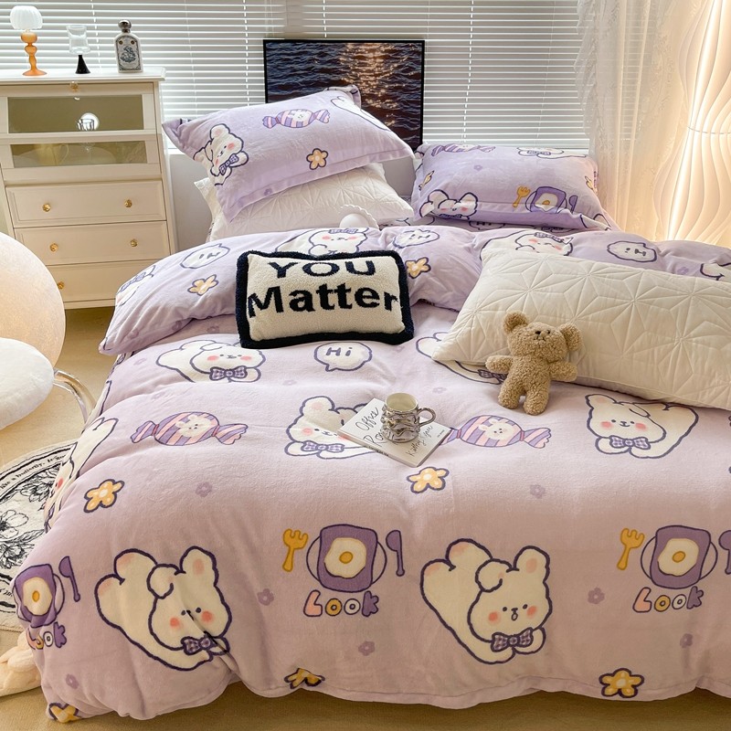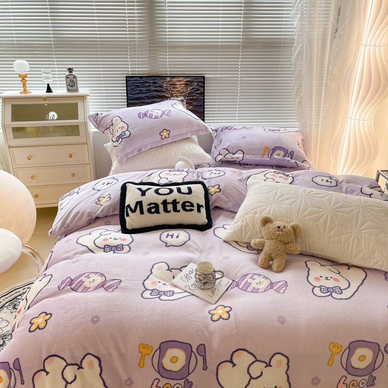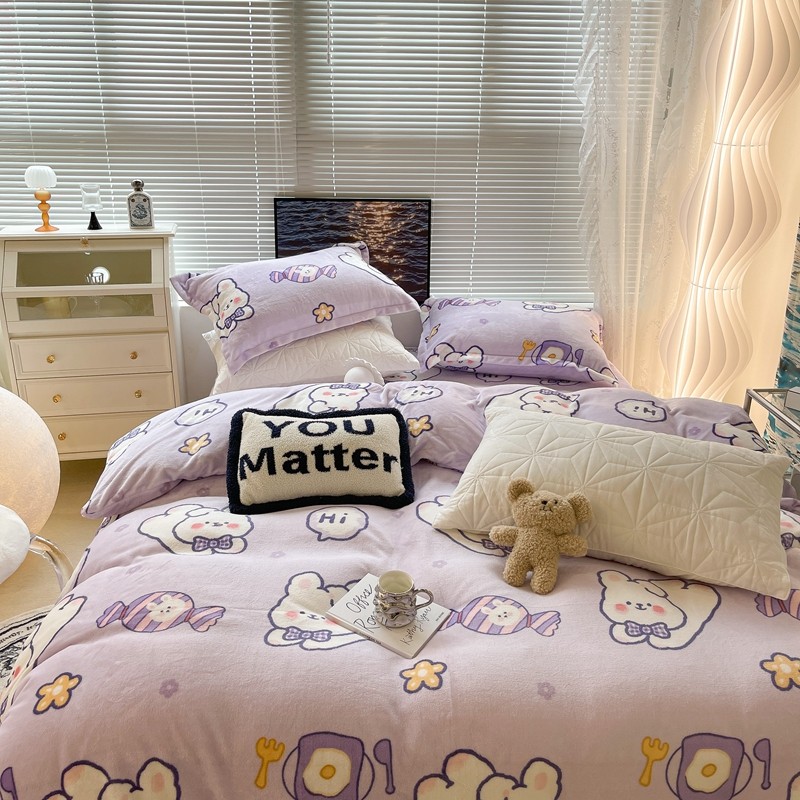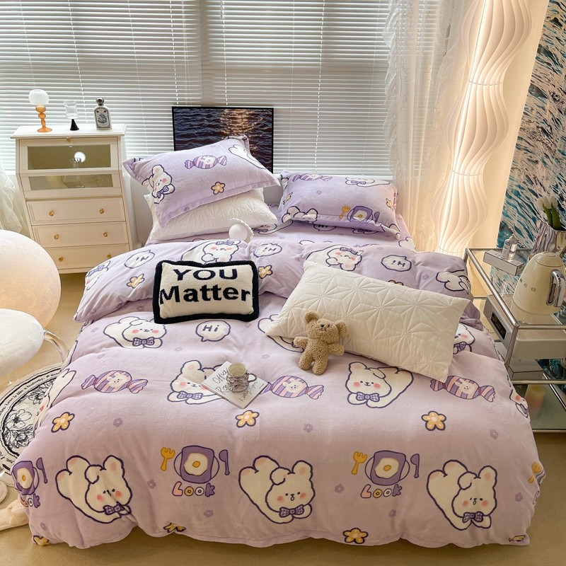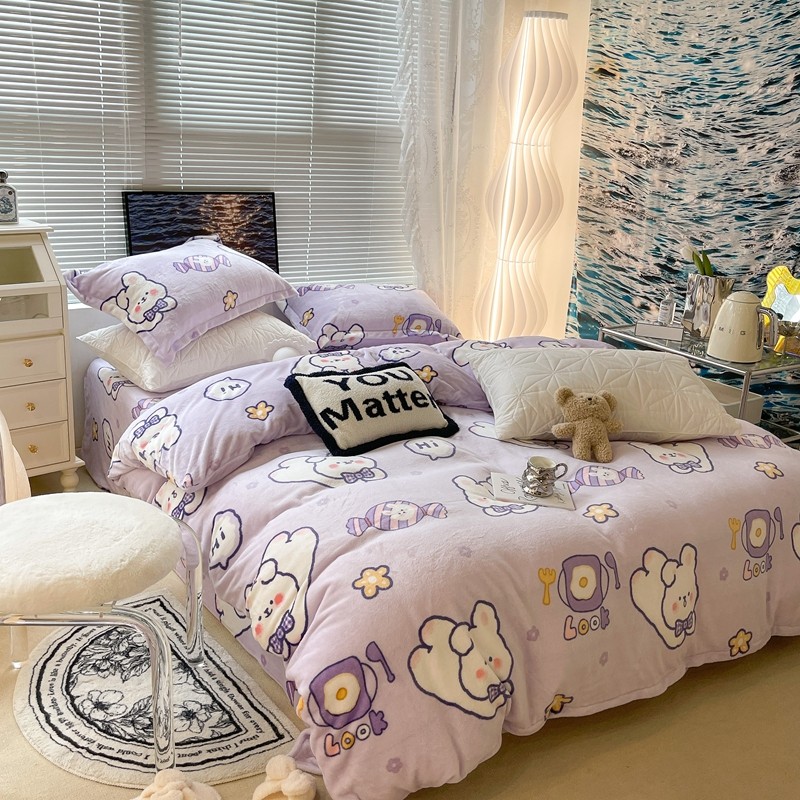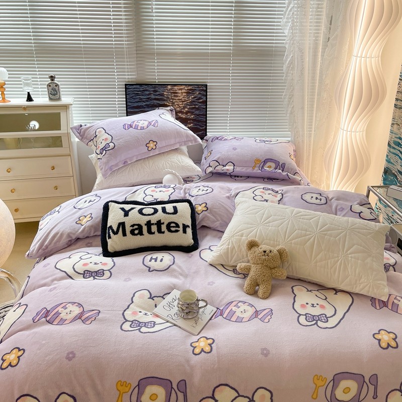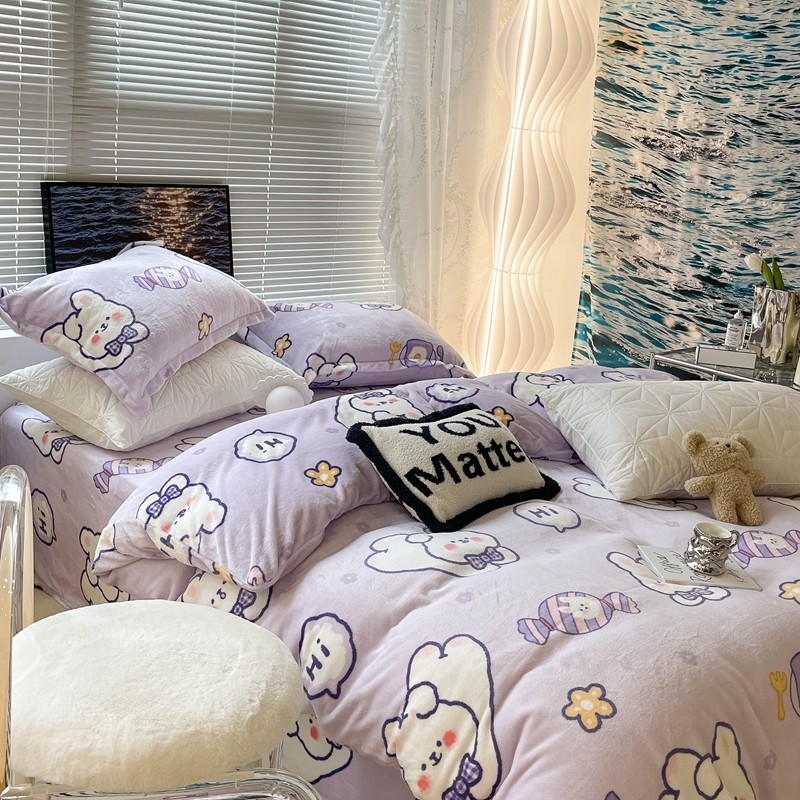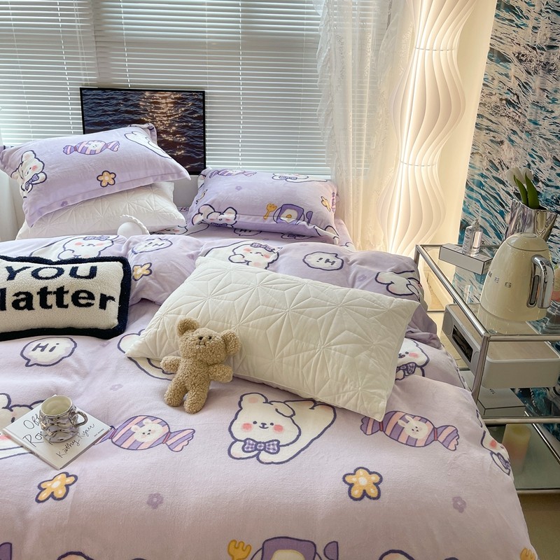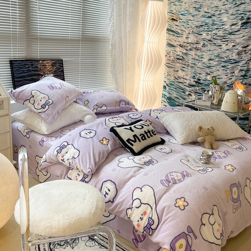 (总)昔可家纺 2024新款印花牛奶绒四件套系列-洛丽塔风,萝莉小兔,小熊烘焙屋,小熊玩偶屋