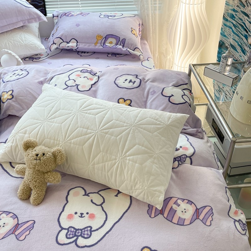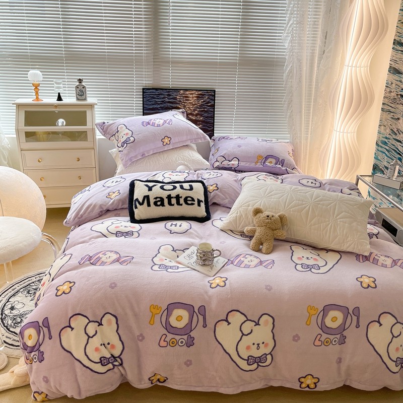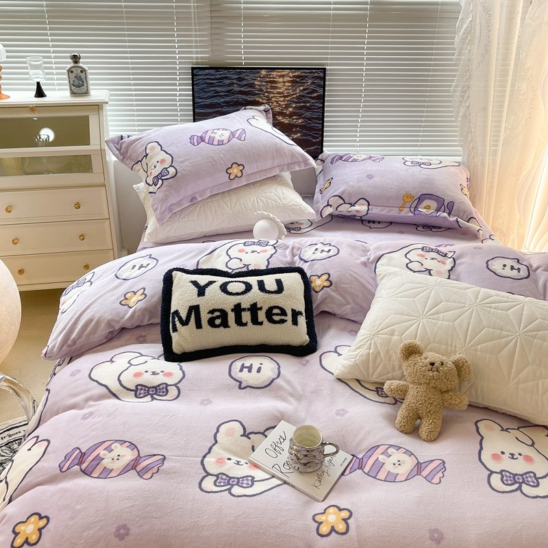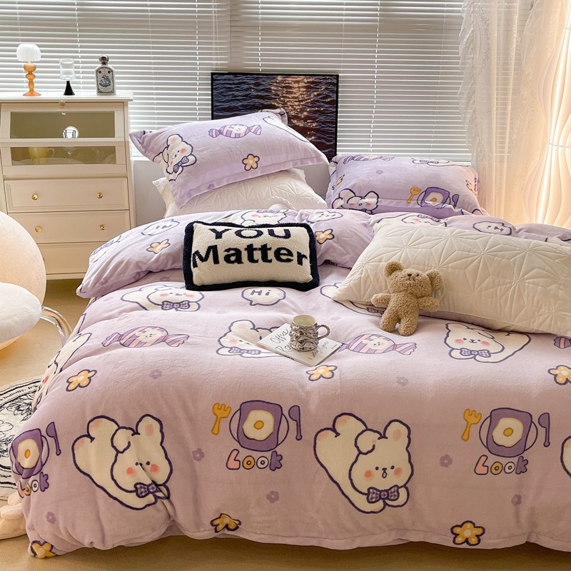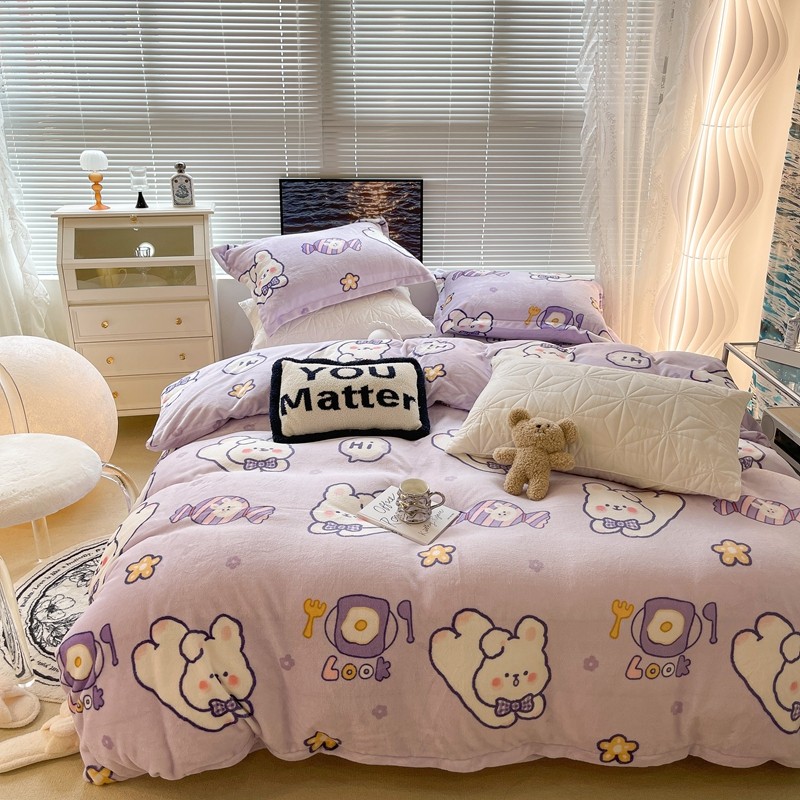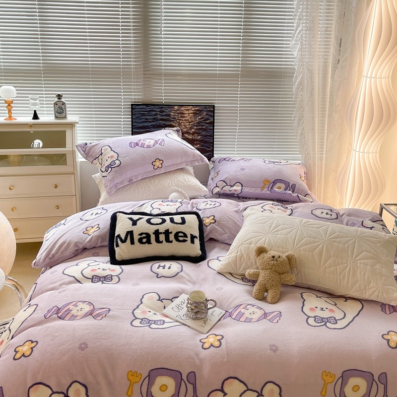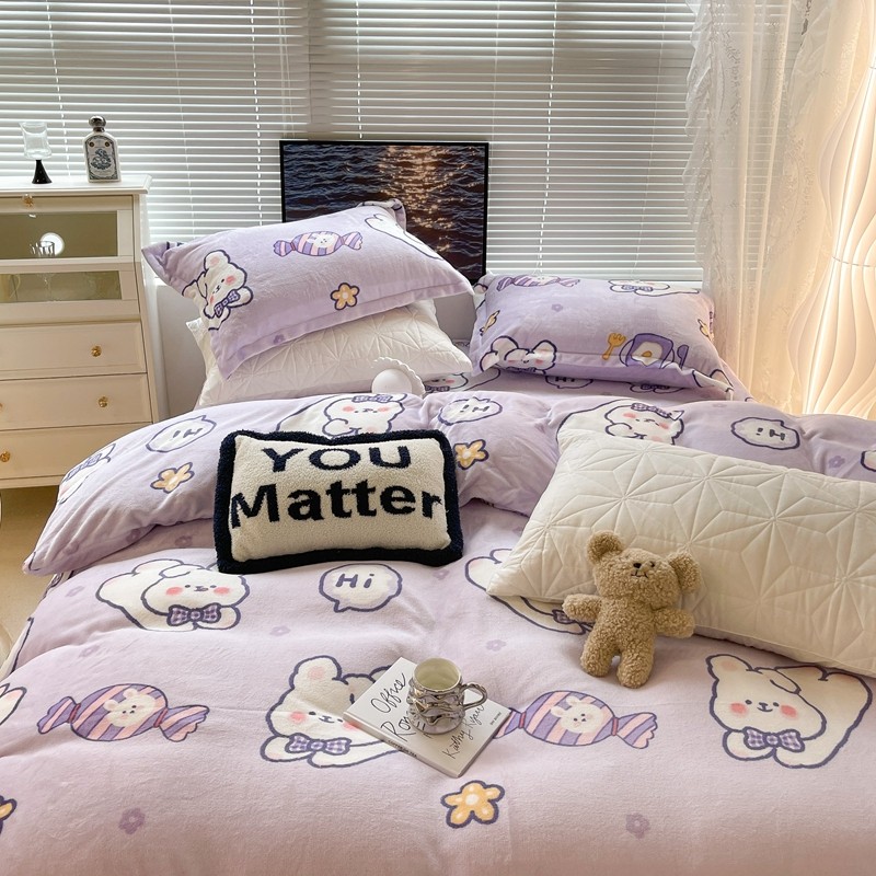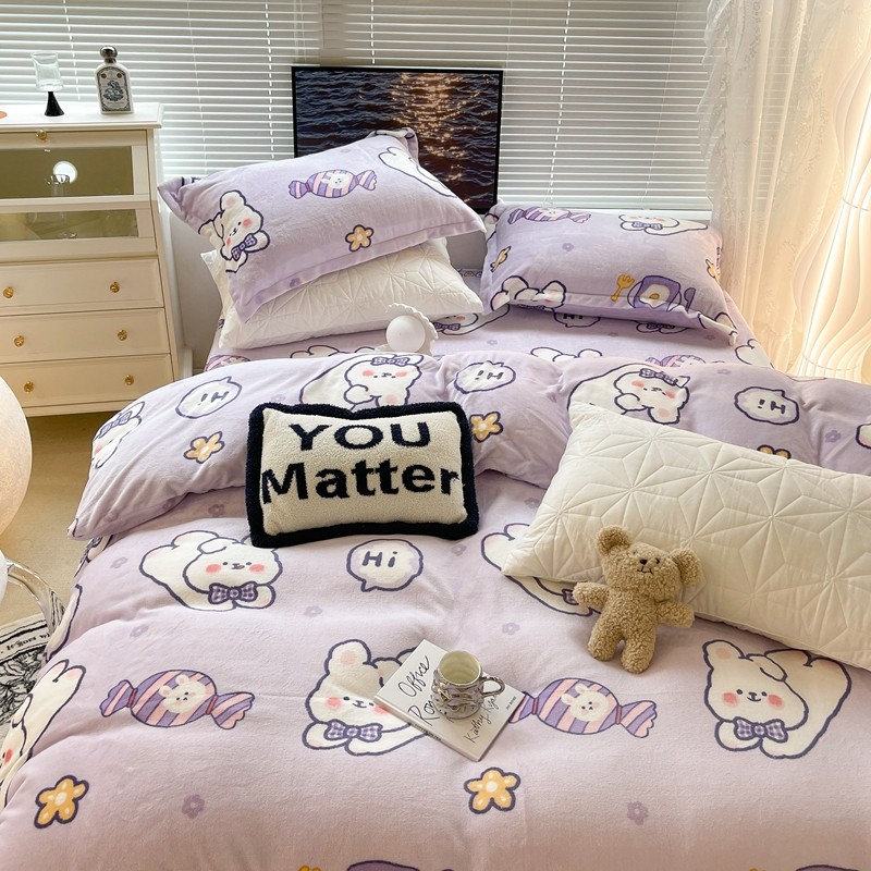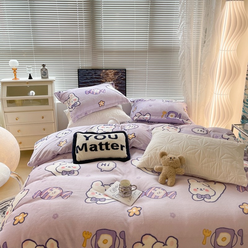 (总)昔可家纺 2024新款印花牛奶绒四件套系列-洛丽塔风,萝莉小兔,小熊烘焙屋,小熊玩偶屋