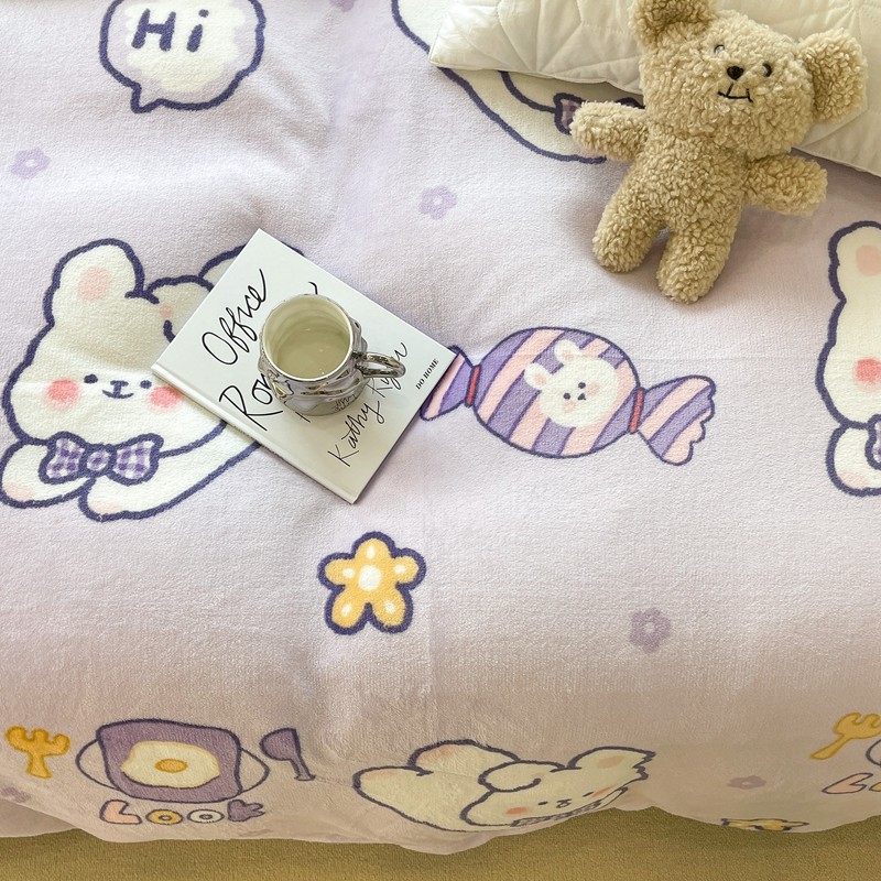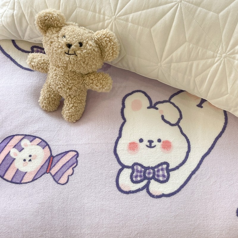 商品名称:昔可家纺 2021新款牛奶绒四件套-一批 梦幻紫兔兔