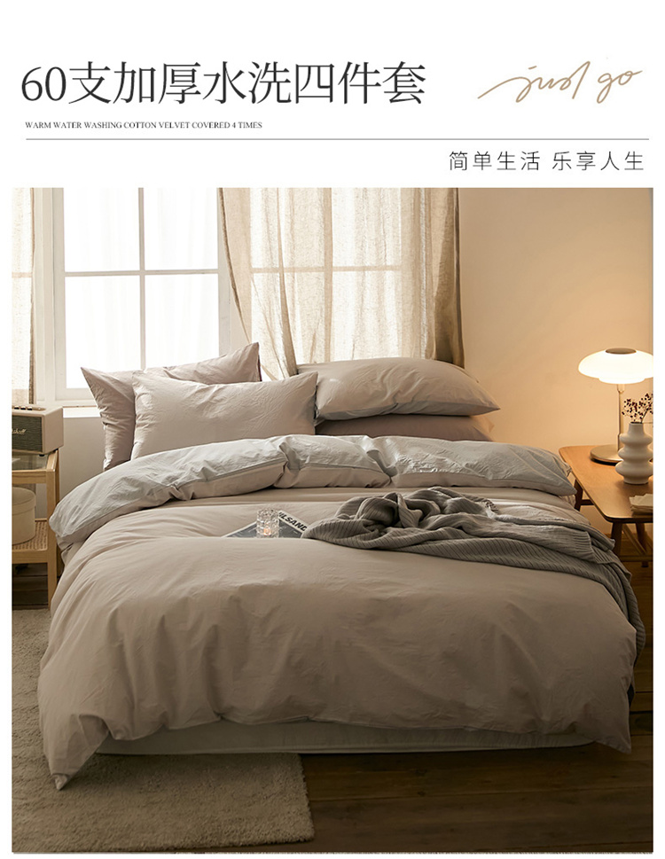 当前位置: 91家纺网 > 商品网购 > 床品套件 > 四件套 > 水洗棉四件套 > 2022加厚60S水洗棉四件套 古董灰-淡蓝灰