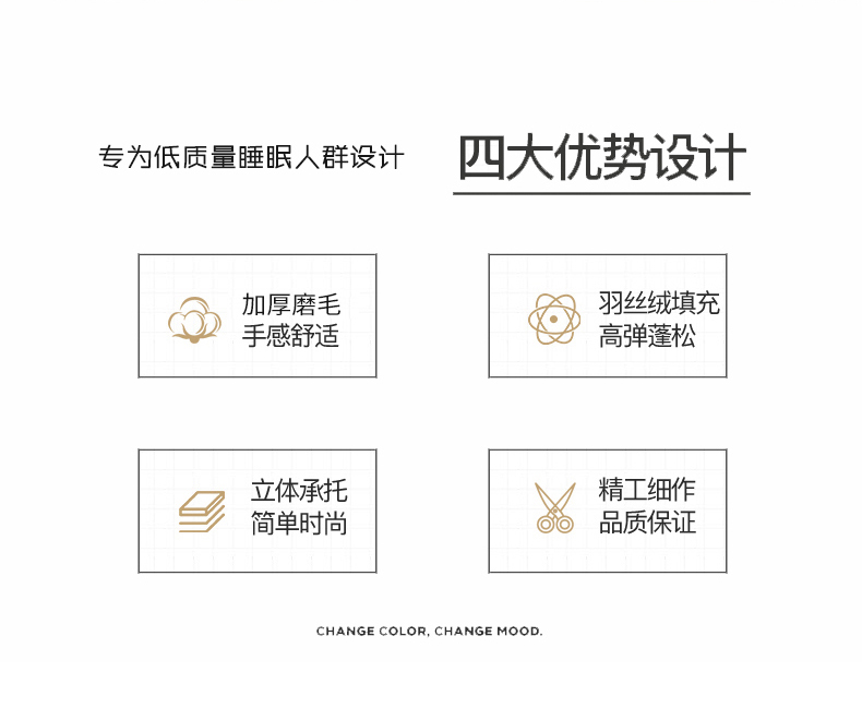 商品名称:2022新款加厚磨毛艾草羽丝绒枕头绗缝刺绣护颈单人安睡枕芯