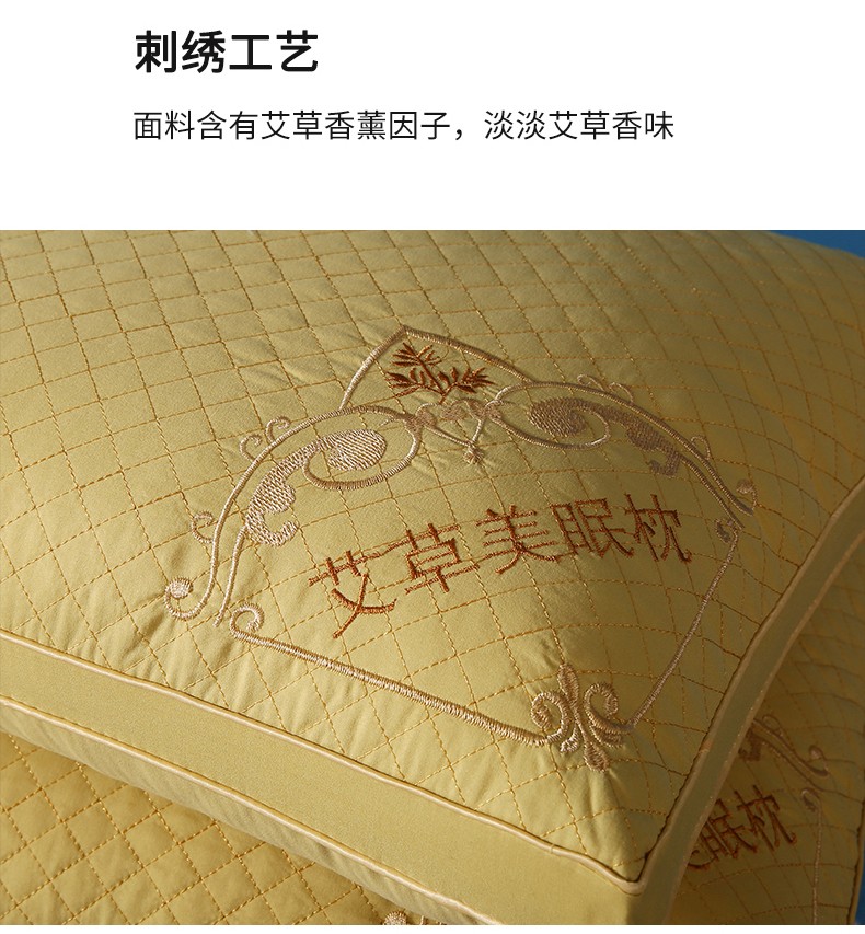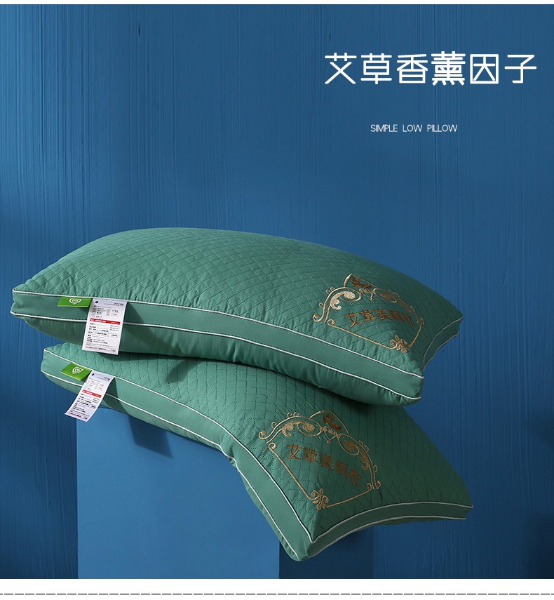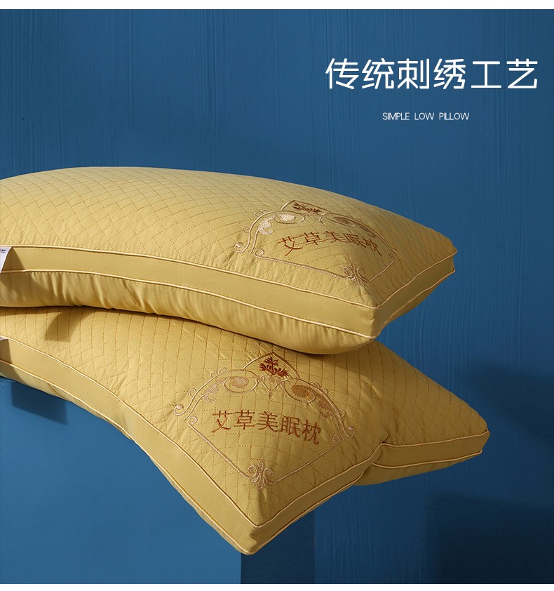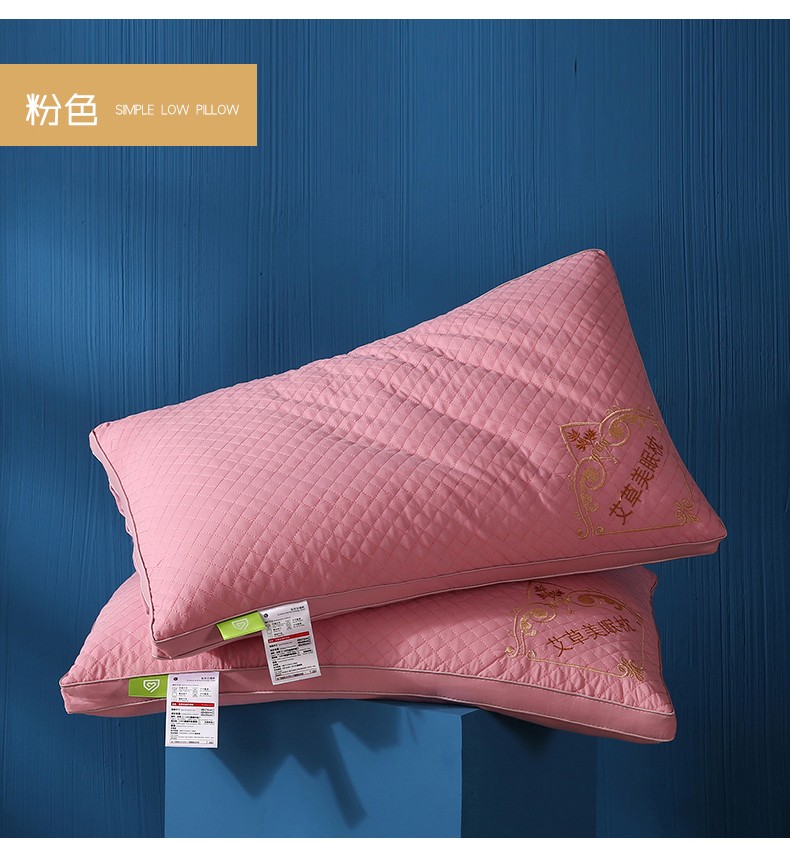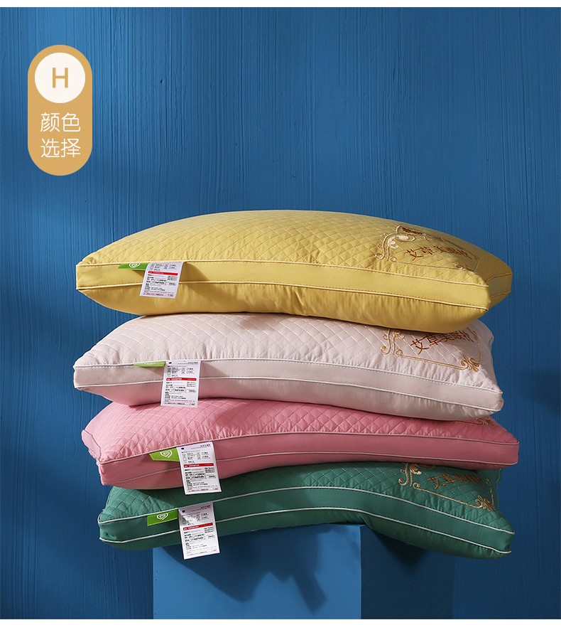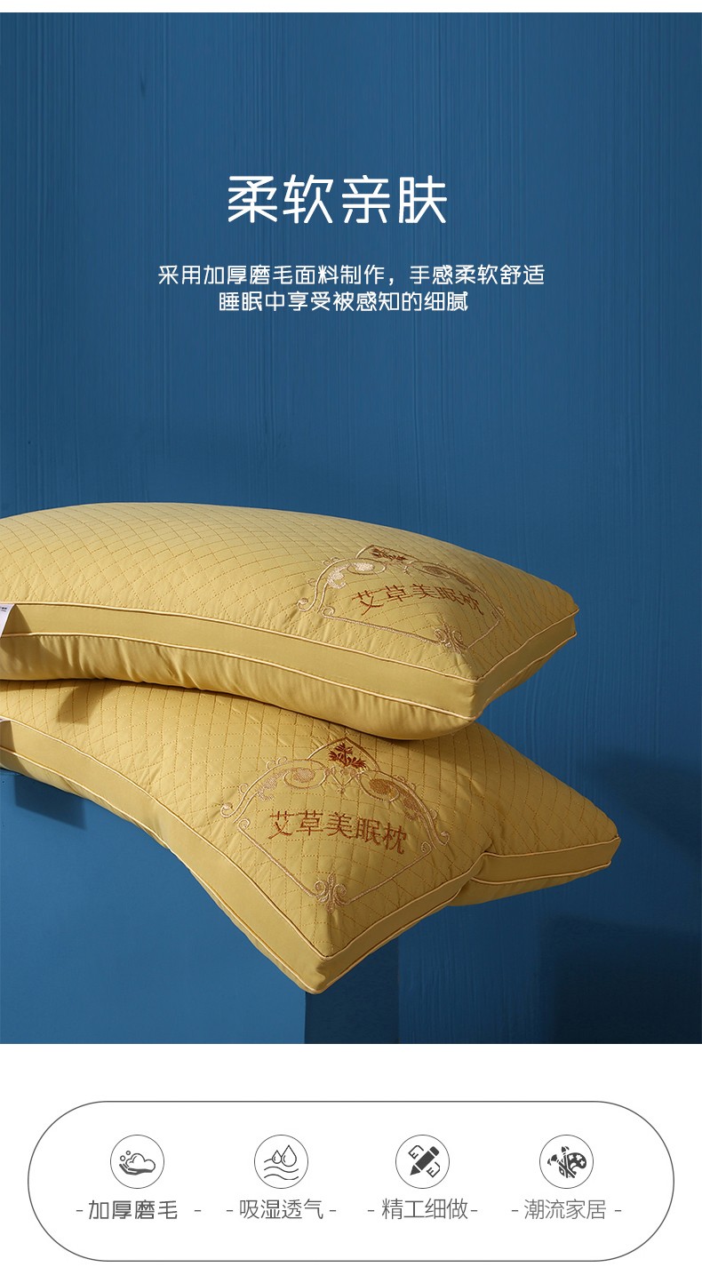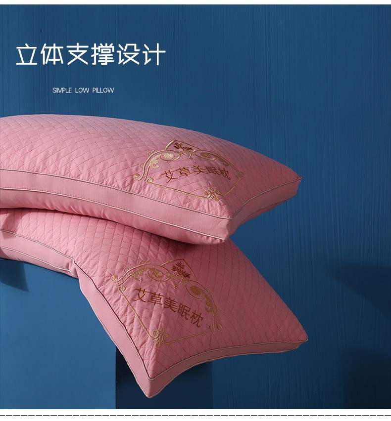 2022新款加厚磨毛艾草羽丝绒枕头绗缝刺绣护颈单人安睡枕芯