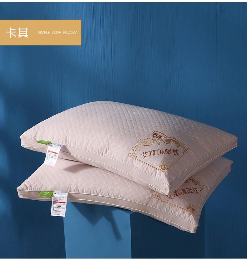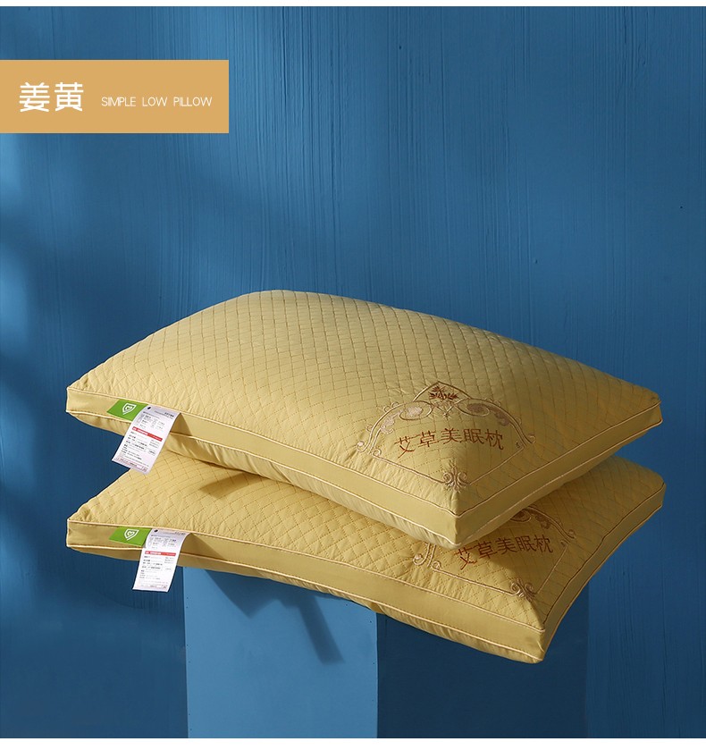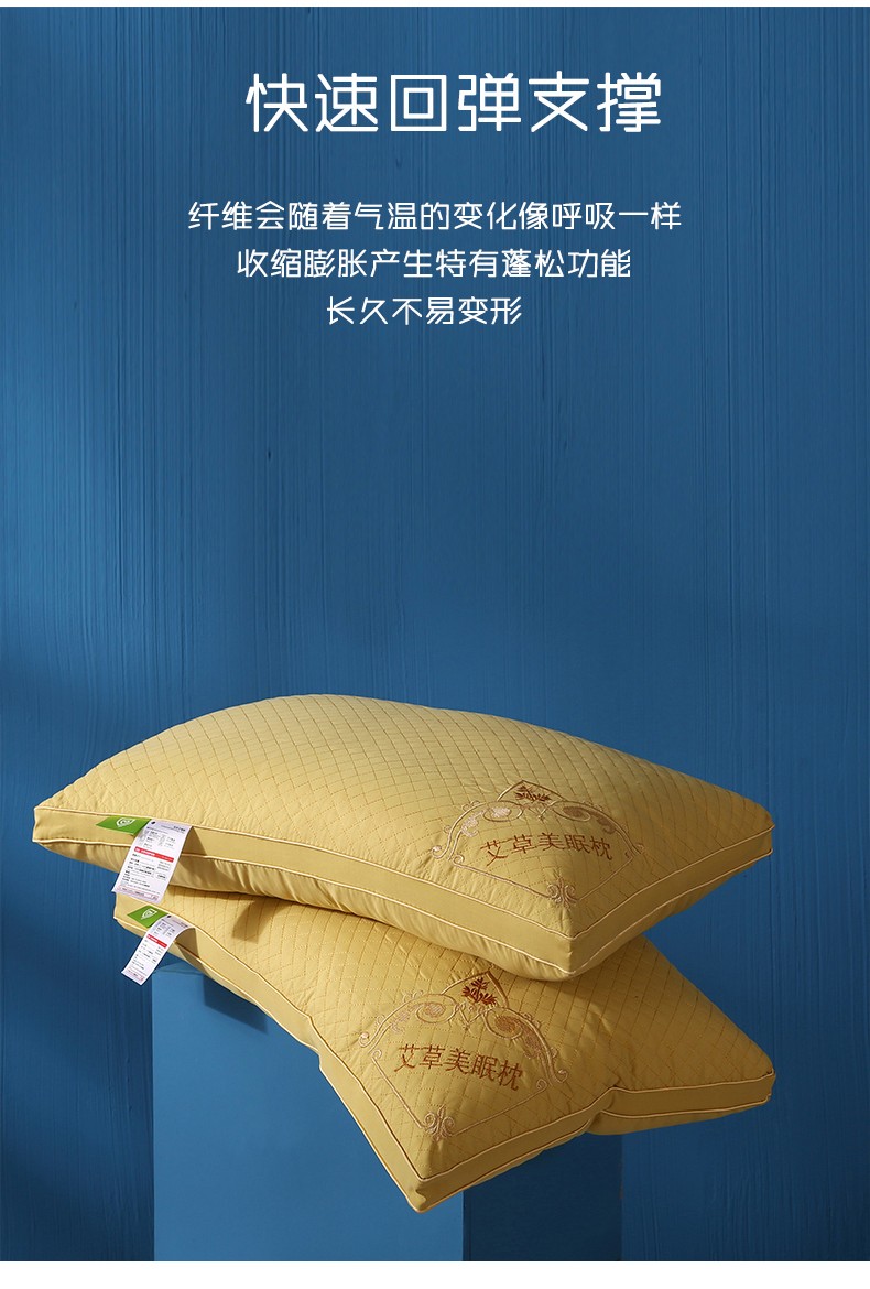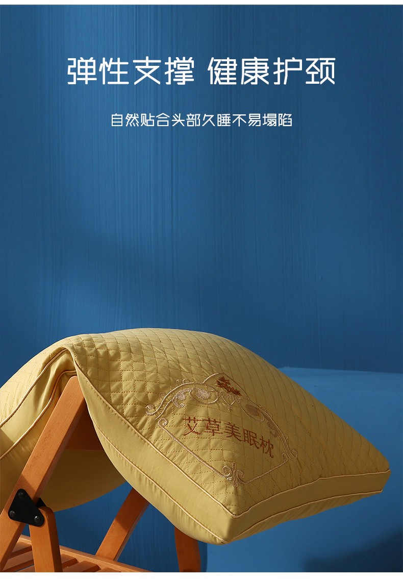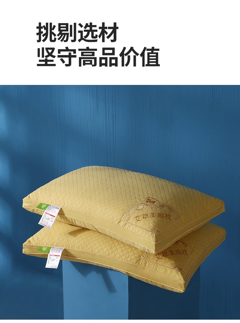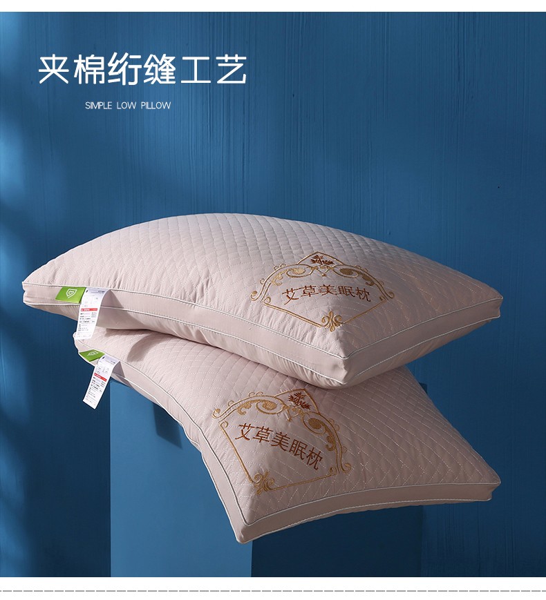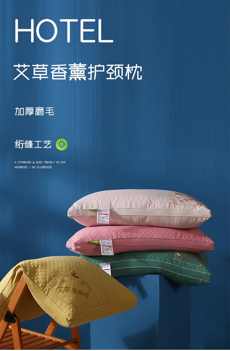 2022新款加厚磨毛艾草羽丝绒枕头绗缝刺绣护颈单人安睡枕芯