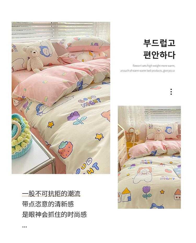 • 91家纺网 家纺一手货源 找家纺 曼之夏 2022新款全棉清新印花单被套 草莓奶熊