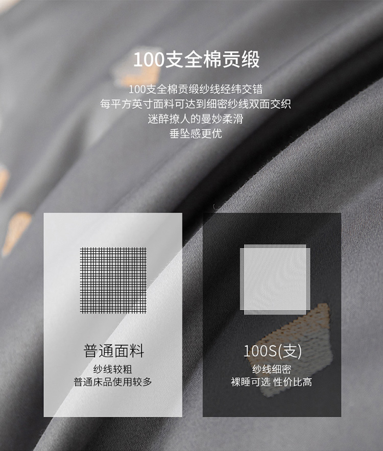 商品名称:爱缦 2022耀影系列100支长绒棉奥棉四件套 银灰