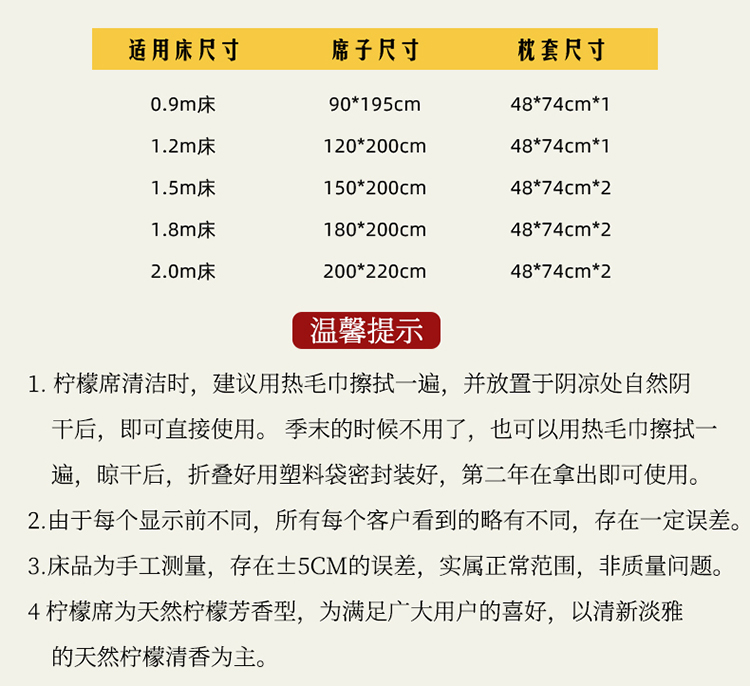 商品名称:小牛席业 2022新款柠檬清香席 冰藤青柠