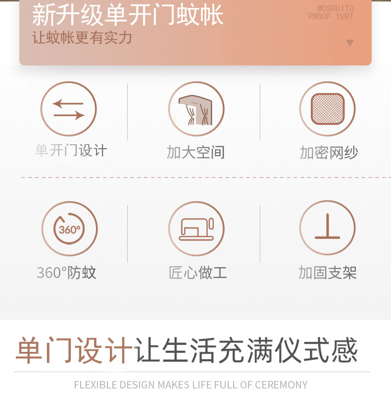 (总)初心家纺 2025新宫廷落地加密单开门蚊帐-恋人心