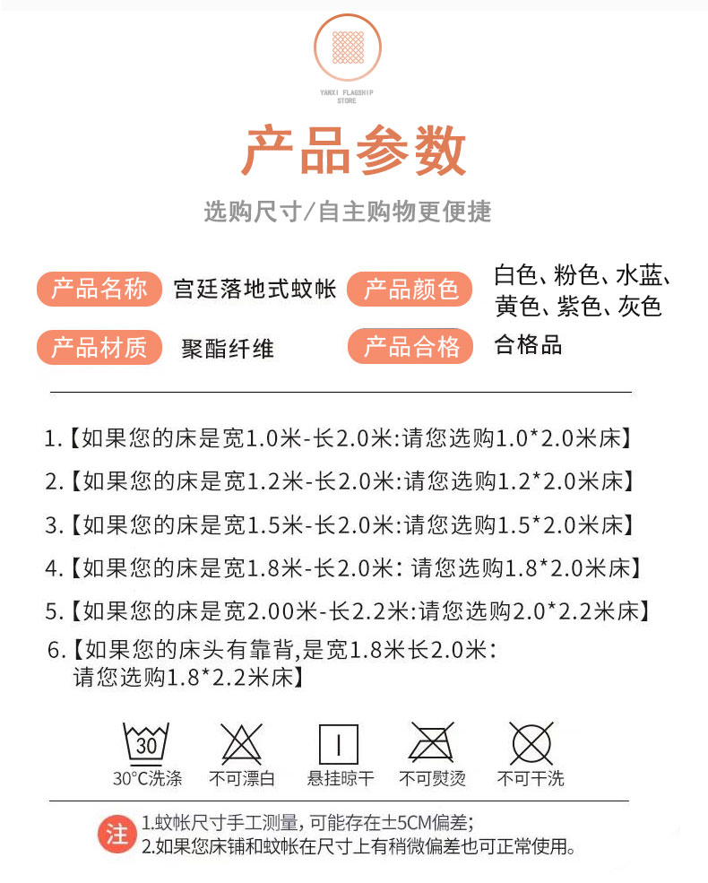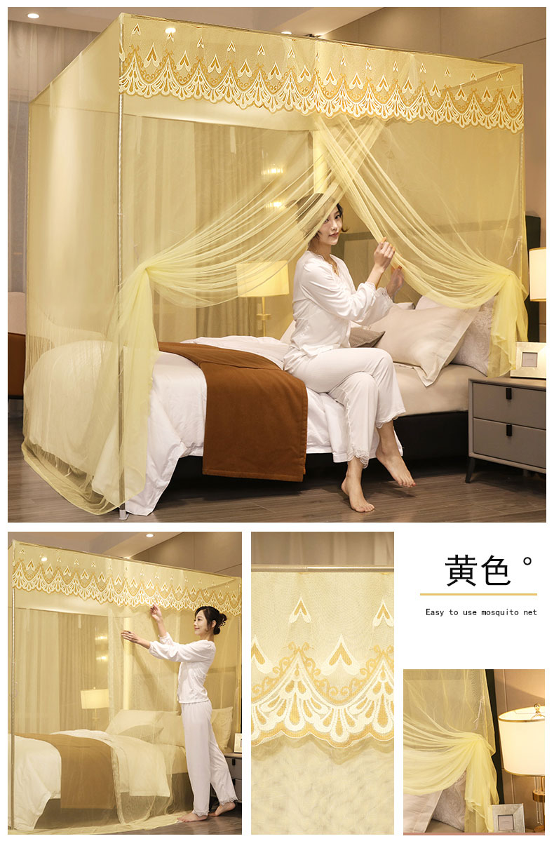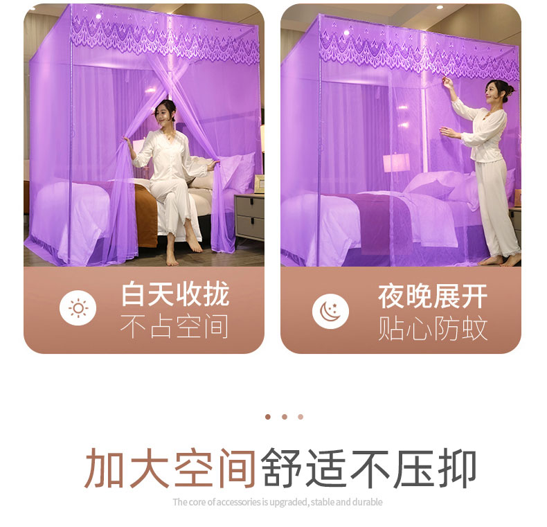 (总)初心 2025新款落地宫廷蚊帐-粉黛佳人,白色,粉,米黄,水蓝,玉色,紫色