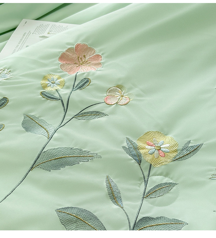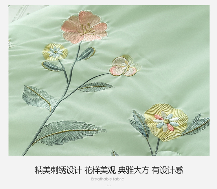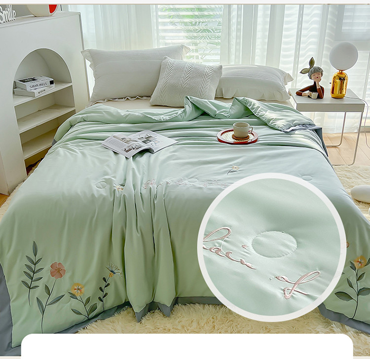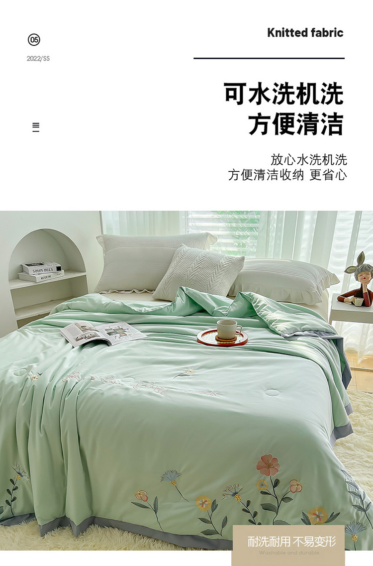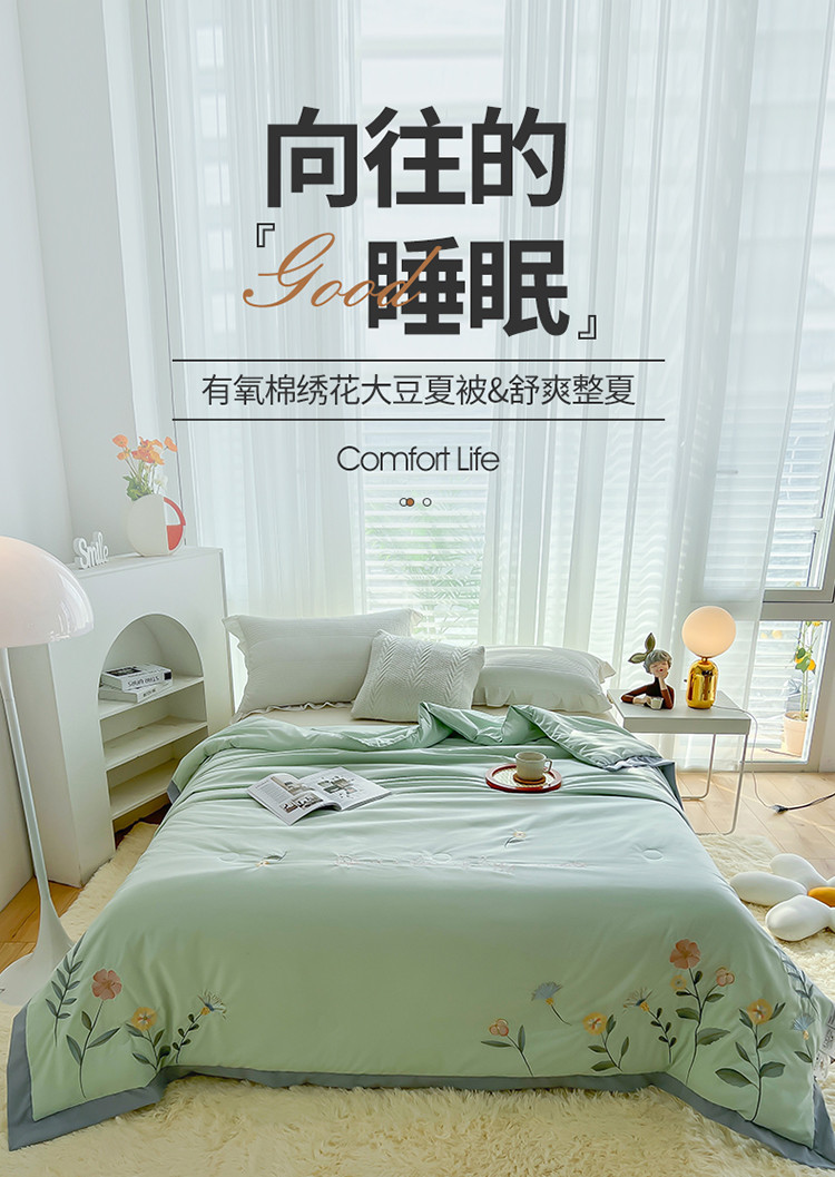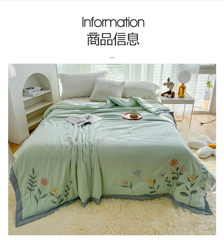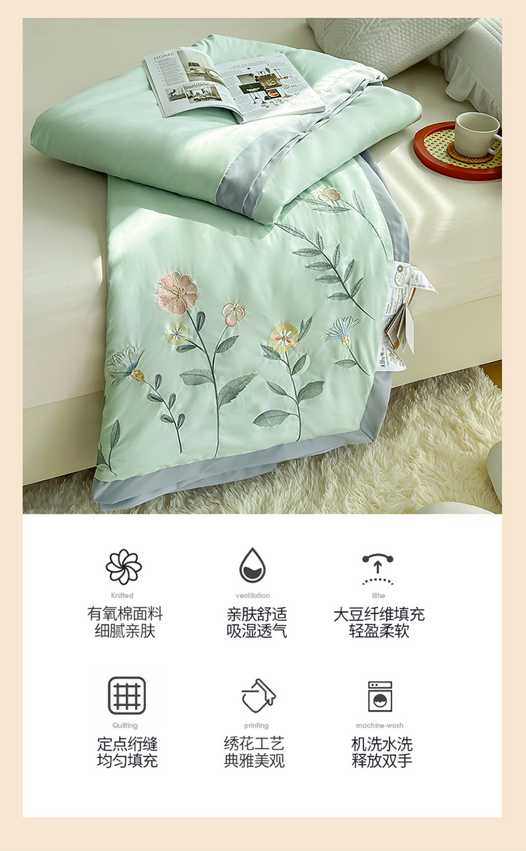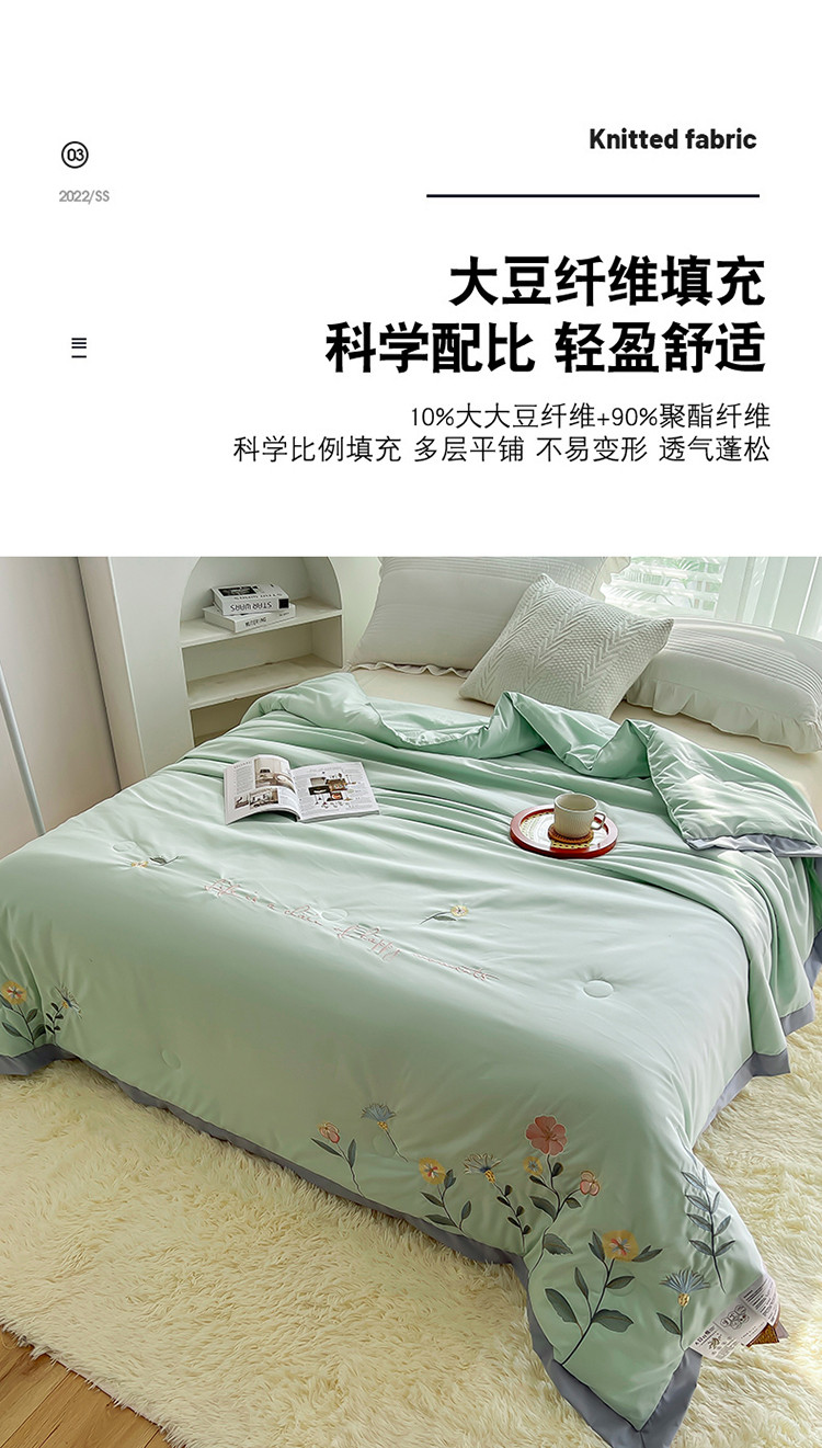 商品名称:澳洲羽 水氧棉刺绣拼角大豆夏凉被直播爆款空调被子 向阳花-绿
