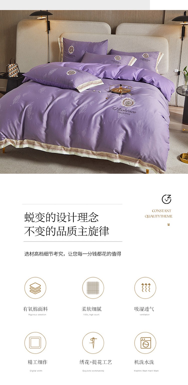 凡客 2022新款有氧棉提加绣米诺斯四件套 米诺斯-紫